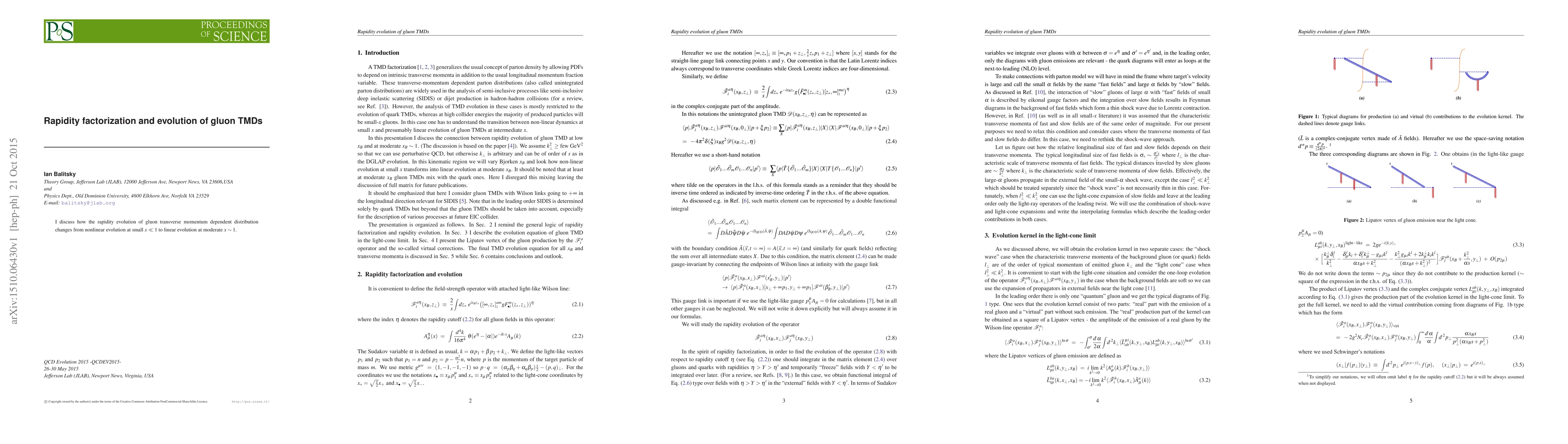 I discuss how the rapidity evolution of gluon transverse momentum dependent distribution changes from nonlinear evolution at small $x\ll 1$ to linear evolution at moderate $x\sim 1$.