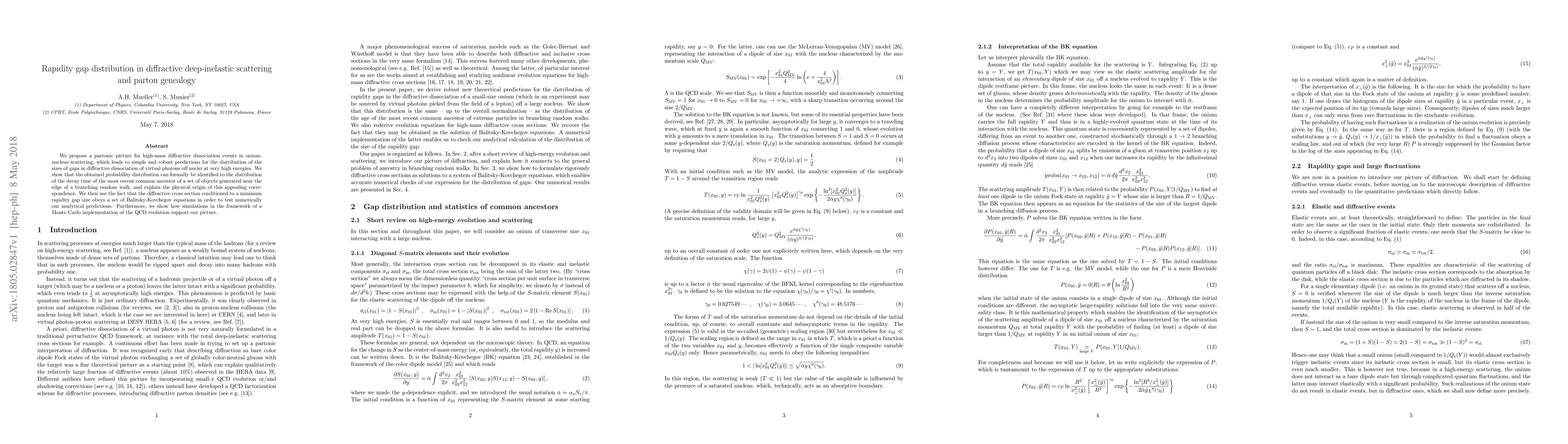 This paper proposes a partonic model for high-mass diffractive dissociation events in onium-nucleus scattering, predicting the rapidity gap distribution. It identifies this distribution with the decay time of the most recent common ancestor in a branching random walk, supported by numerical tests and Monte Carlo simulations.