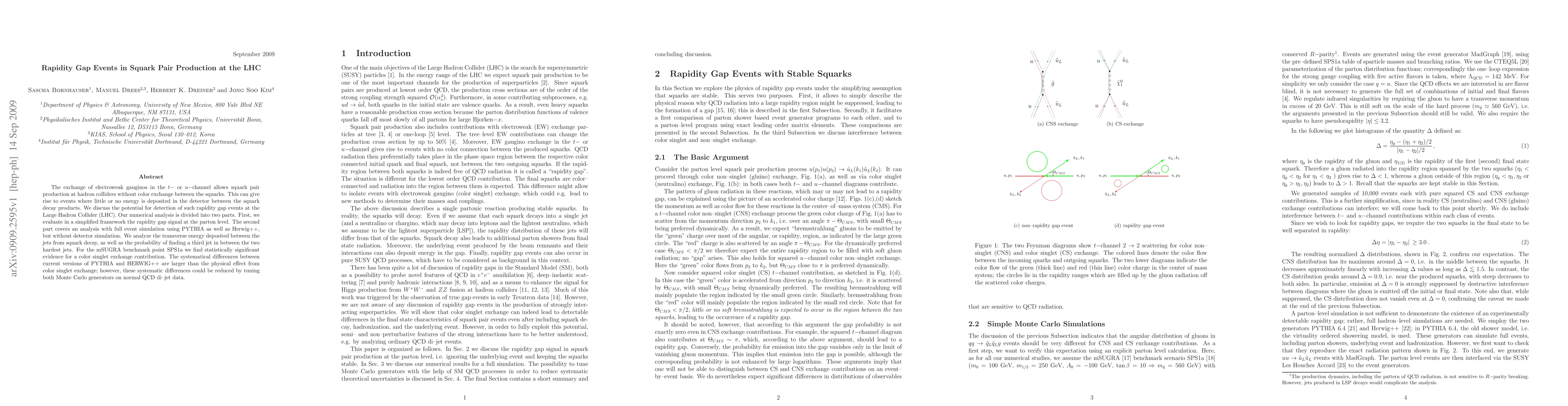Researchers investigated rapidity gap events in squark pair production at the LHC, finding statistically significant evidence for a color singlet exchange contribution, but noted that systematic differences between Monte Carlo generators could be reduced.