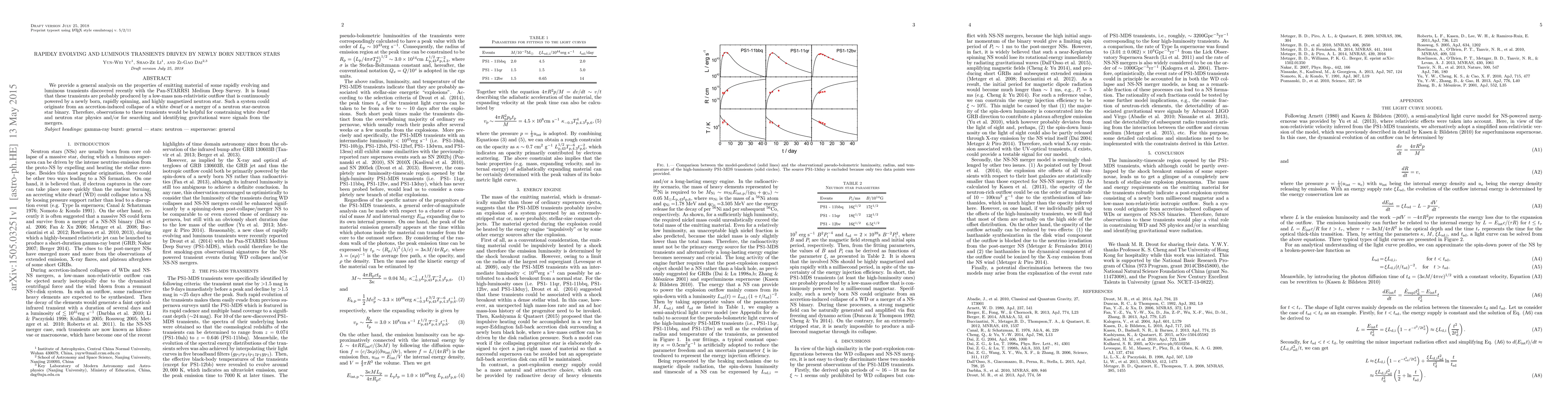 This paper analyzes rapidly evolving and luminous transients, suggesting they are likely powered by low-mass, non-relativistic outflows from newly born, rapidly spinning, and highly magnetized neutron stars. These neutron stars may result from white dwarf accretion-induced collapse or neutron star mergers, providing insights into white dwarf and neutron star physics and potential gravitational wave signals.