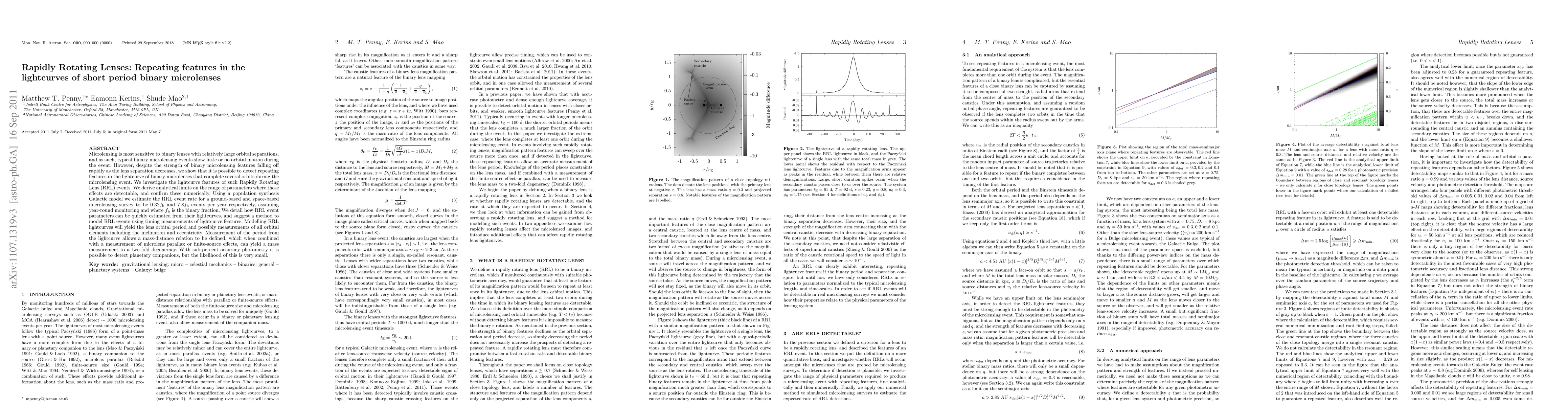 Microlensing is most sensitive to binary lenses with relatively large orbital separations, and as such, typical binary microlensing events show little or no orbital motion during the event. However, despite the strength of binary microlensing features falling off rapidly as the lens separation decreases, we show that it is possible to detect repeating features in the lightcurve of binary microlenses that complete several orbits during the microlensing event. We investigate the lightcurve features of such Rapidly Rotating Lens (RRL) events. We derive analytical limits on the range of parameters where these effects are detectable, and confirm these numerically. Using a population synthesis Galactic model we estimate the RRL event rate for a ground-based and space-based microlensing survey to be 0.32fb and 7.8fb events per year respectively, assuming year-round monitoring and where fb is the binary fraction. We detail how RRL event parameters can be quickly estimated from their lightcurves, and suggest a method to model RRL events using timing measurements of lightcurve features. Modelling RRL lightcurves will yield the lens orbital period and possibly measurements of all orbital elements including the inclination and eccentricity. Measurement of the period from the lightcurve allows a mass-distance relation to be defined, which when combined with a measurement of microlens parallax or finite source effects, can yield a mass measurement to a two-fold degeneracy. With sub-percent accuracy photometry it is possible to detect planetary companions, but the likelihood of this is very small.