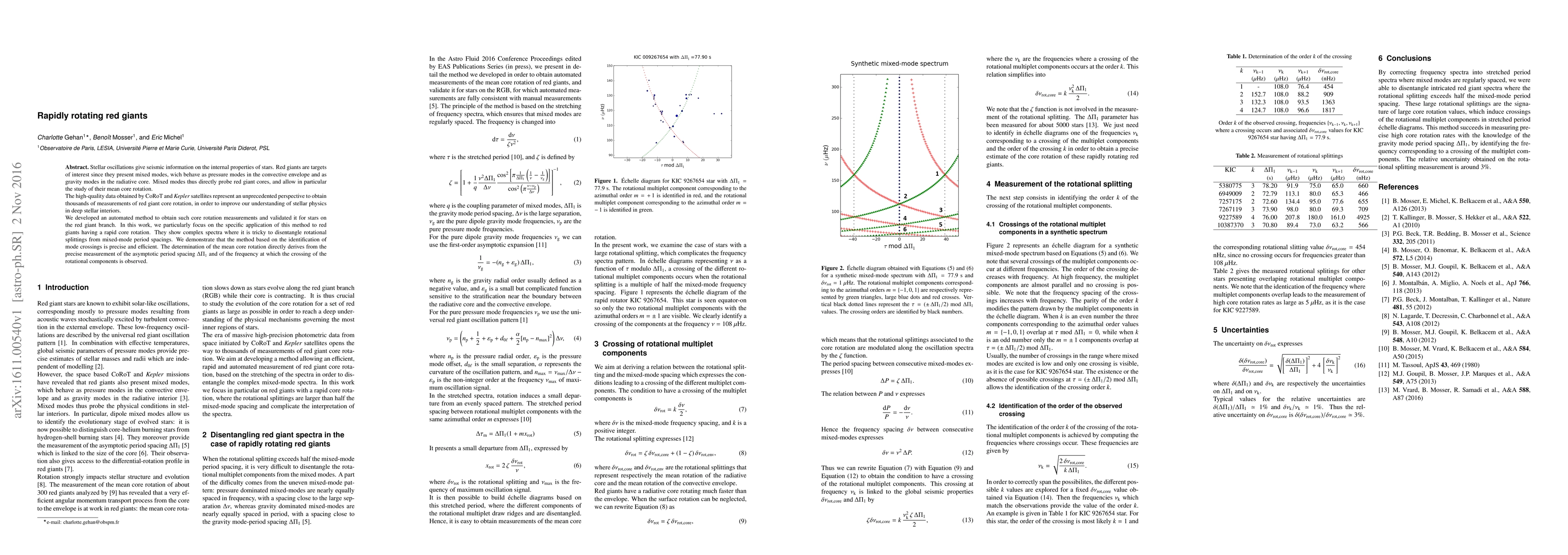 This paper presents an automated method to measure the core rotation in rapidly rotating red giants using stellar oscillation data from CoRoT and Kepler satellites. The method, validated for red giants on the red giant branch, accurately identifies mixed modes and disentangles rotational splittings, providing precise measurements of core rotation.