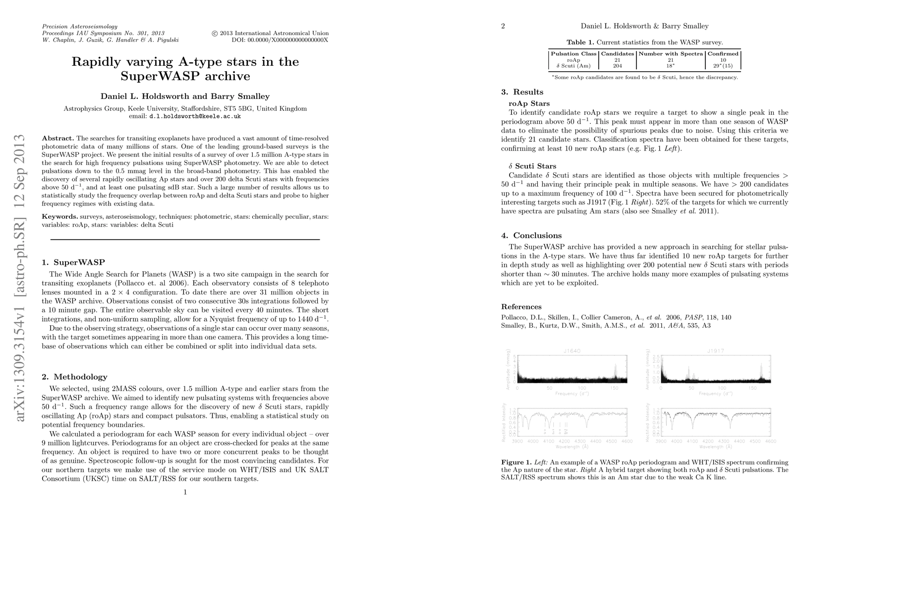 The searches for transiting exoplanets have produced a vast amount of time-resolved photometric data of many millions of stars. One of the leading ground-based surveys is the SuperWASP project. We present the initial results of a survey of over 1.5 million A-type stars in the search for high frequency pulsations using SuperWASP photometry. We are able to detect pulsations down to the 0.5 mmag level in the broad-band photometry. This has enabled the discovery of several rapidly oscillating Ap stars and over 200 delta Scuti stars with frequencies above 50 d$^{-1}$, and at least one pulsating sdB star. Such a large number of results allows us to statistically study the frequency overlap between roAp and delta Scuti stars and probe to higher frequency regimes with existing data.