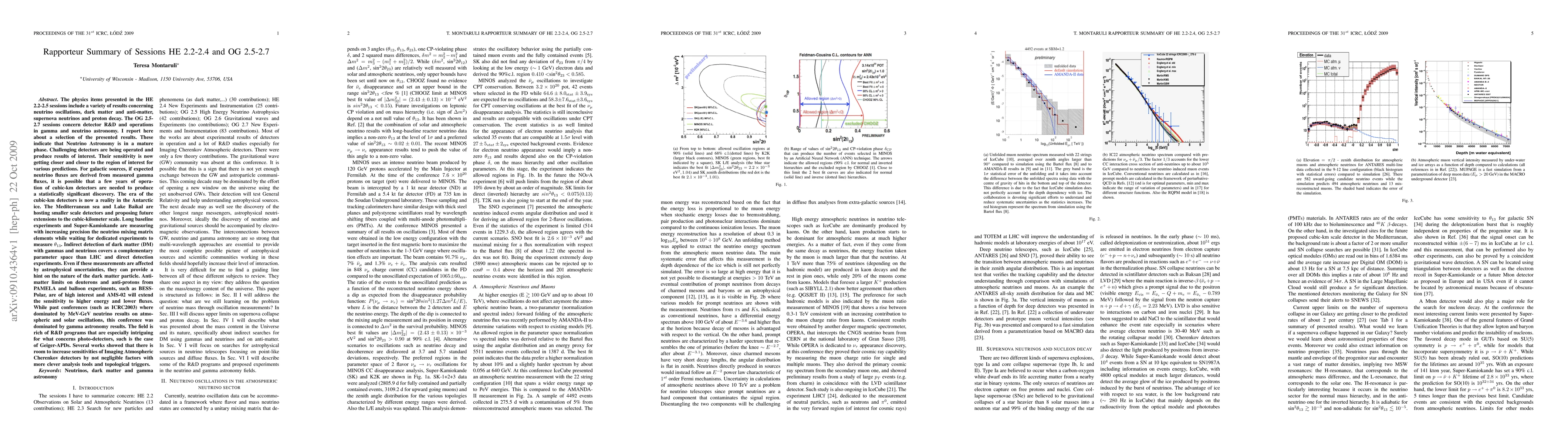 This paper summarizes key findings from sessions HE 2.2-2.4 and OG 2.5-2.7, focusing on neutrino oscillations, dark matter, supernova neutrinos, proton decay, and advancements in gamma and neutrino astronomy detector research and operations.