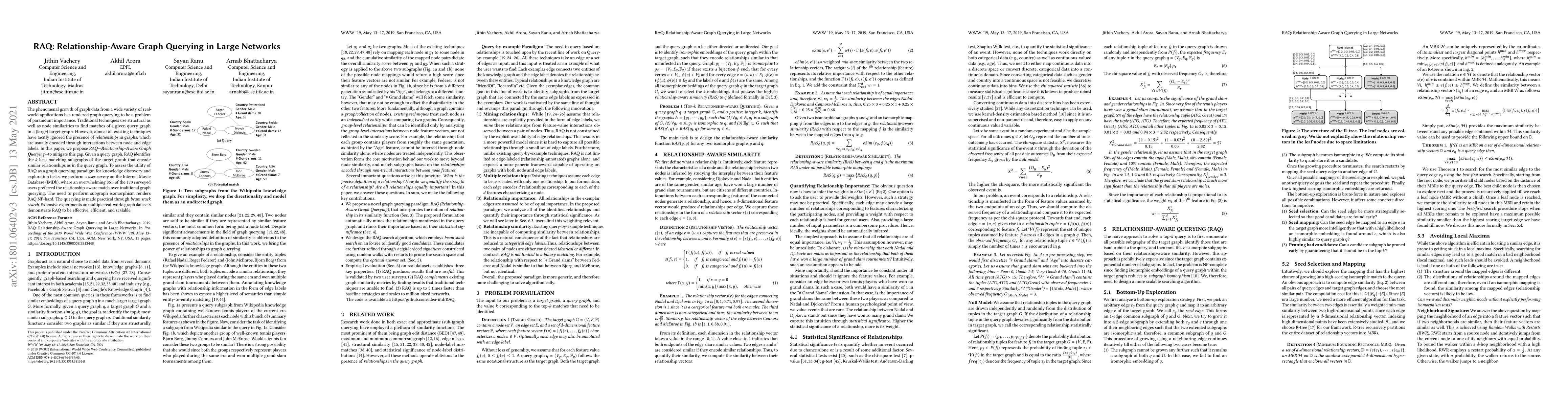 The phenomenal growth of graph data from a wide variety of real-world applications has rendered graph querying to be a problem of paramount importance. Traditional techniques use structural as well as node similarities to find matches of a given query graph in a (large) target graph. However, almost all existing techniques have tacitly ignored the presence of relationships in graphs, which are usually encoded through interactions between node and edge labels. In this paper, we propose RAQ -- Relationship-Aware Graph Querying, to mitigate this gap. Given a query graph, RAQ identifies the $k$ best matching subgraphs of the target graph that encode similar relationships as in the query graph. To assess the utility of RAQ as a graph querying paradigm for knowledge discovery and exploration tasks, we perform a user survey on the Internet Movie Database (IMDb), where an overwhelming 86% of the 170 surveyed users preferred the relationship-aware match over traditional graph querying. The need to perform subgraph isomorphism renders RAQ NP-hard. The querying is made practical through beam stack search. Extensive experiments on multiple real-world graph datasets demonstrate RAQ to be effective, efficient, and scalable.