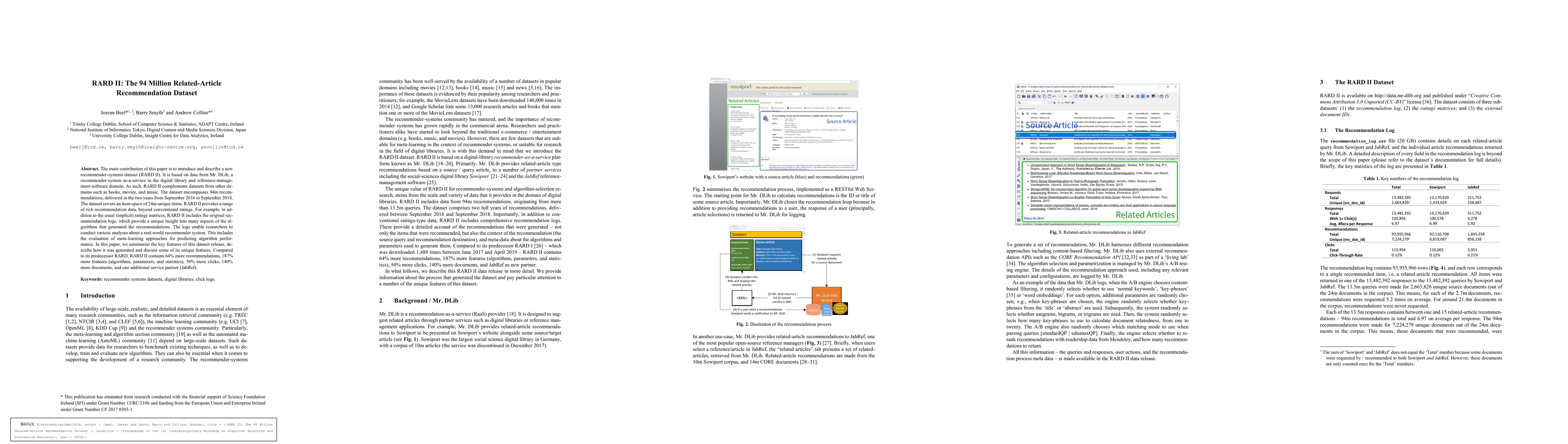 RARD II is a new recommender-systems dataset comprising 94 million recommendations from 2016 to 2018, featuring 24 million unique items and rich data beyond conventional ratings, including recommendation logs for algorithm analysis. It offers 64% more recommendations and 187% more features compared to its predecessor, RARD.