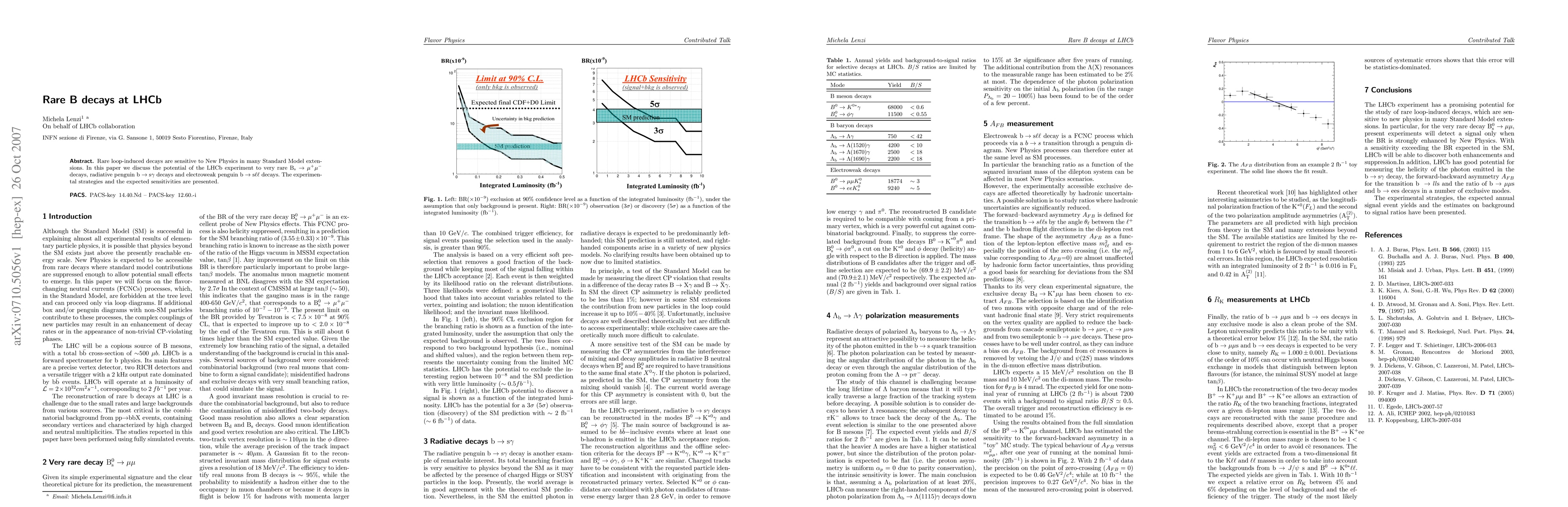 This paper explores the potential of the LHCb experiment to detect rare B decays, including $\mathrm{B_s} \to \mu^+ \mu^-$, $\mathrm{b \to s}\gamma$, and $\mathrm{b \to s\ell\ell}$ decays, which can reveal New Physics beyond the Standard Model. The study outlines experimental strategies and expected sensitivities.