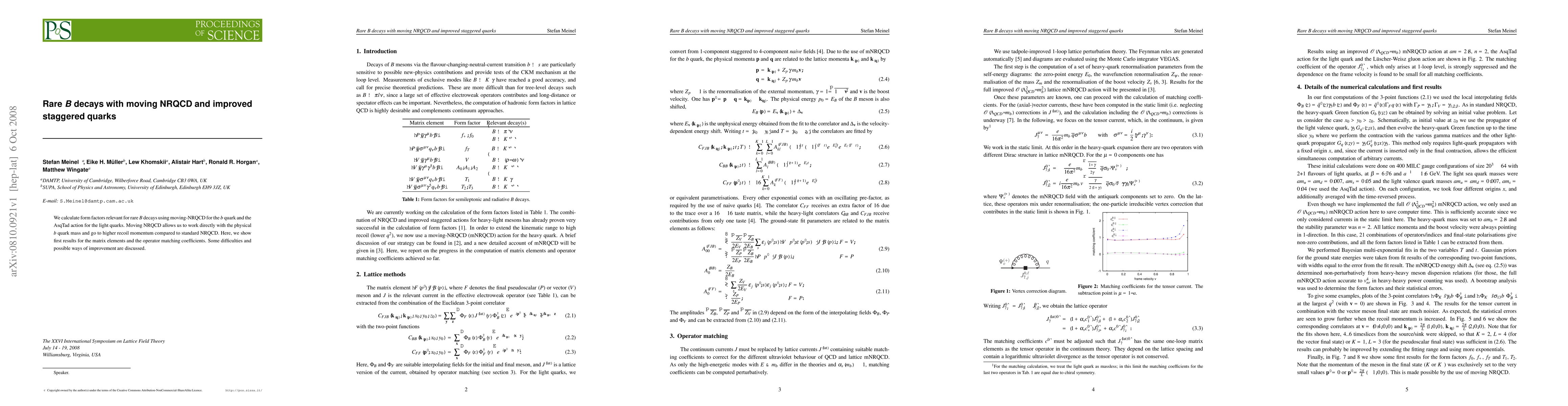 This paper calculates form factors for rare B decays using moving NRQCD for the b quark and AsqTad action for light quarks, allowing for higher recoil momentum. Initial results for matrix elements and operator matching coefficients are presented, along with discussions on challenges and potential improvements.