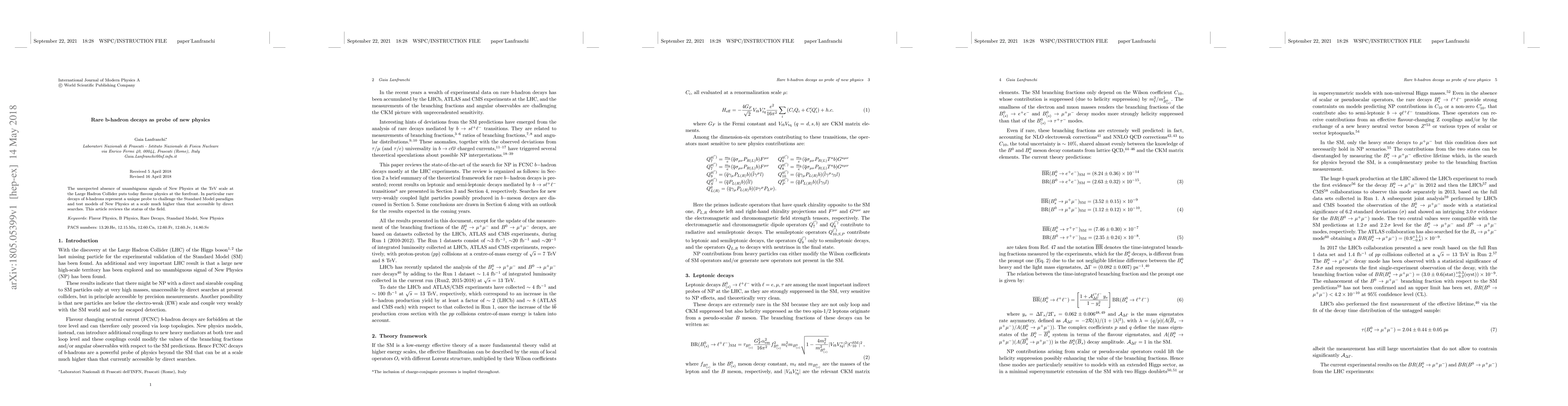 Rare b-hadron decays are being studied to test new physics theories beyond the Standard Model, as direct searches at the Large Hadron Collider have yielded no conclusive results.