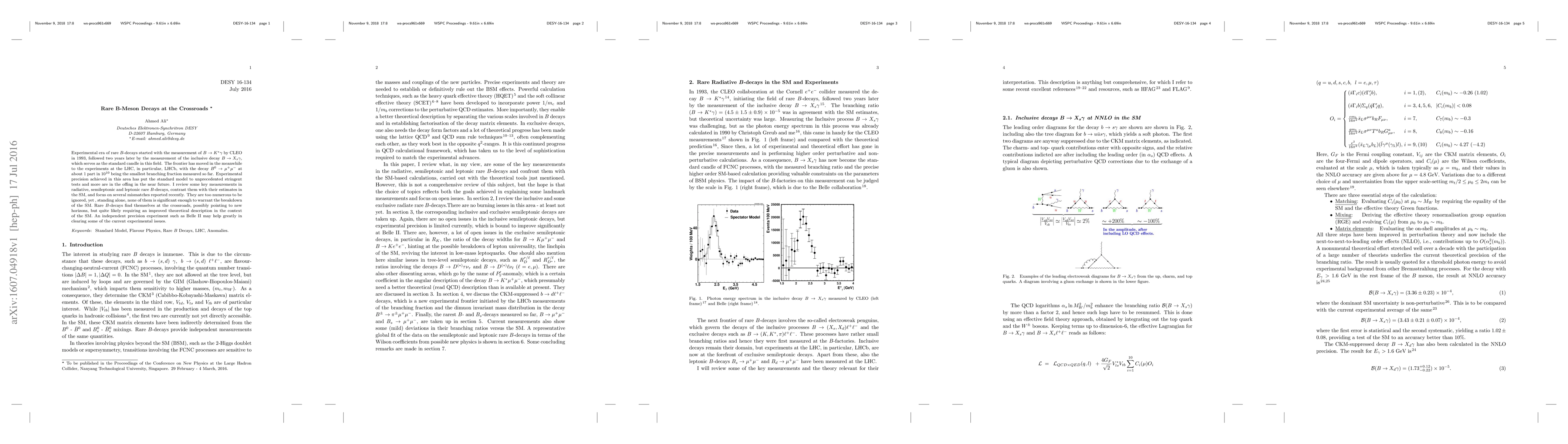Experimental era of rare $B$-decays started with the measurement of $B \to K^* \gamma$ by CLEO in 1993, followed two years later by the measurement of the inclusive decay $B \to X_s \gamma$, which serves as the standard candle in this field. The frontier has moved in the meanwhile to the experiments at the LHC, in particular, LHCb, with the decay $B^0 \to \mu^+ \mu^-$ at about 1 part in $10^{10}$ being the smallest branching fraction measured so far. Experimental precision achieved in this area has put the standard model to unprecedented stringent tests and more are in the offing in the near future. I review some key measurements in radiative, semileptonic and leptonic rare $B$-decays, contrast them with their estimates in the SM, and focus on several mismatches reported recently. They are too numerous to be ignored, yet , standing alone, none of them is significant enough to warrant the breakdown of the SM. Rare $B$-decays find themselves at the crossroads, possibly pointing to new horizons, but quite likely requiring an improved theoretical description in the context of the SM. An independent precision experiment such as Belle II may help greatly in clearing some of the current experimental issues.