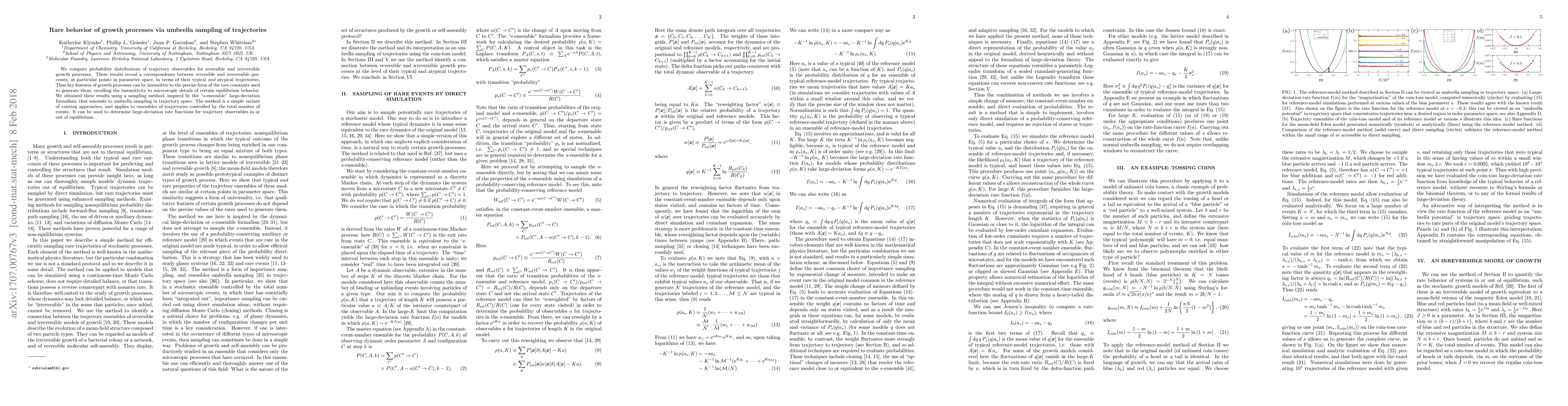 This paper investigates the probability distributions of growth process trajectories using umbrella sampling, revealing a surprising correspondence between reversible and irreversible processes in terms of their typical and atypical trajectories. The study highlights that key growth process features can be robust to the specific rate constants, akin to certain equilibrium behaviors, and introduces a straightforward umbrella sampling method for trajectory space analysis.