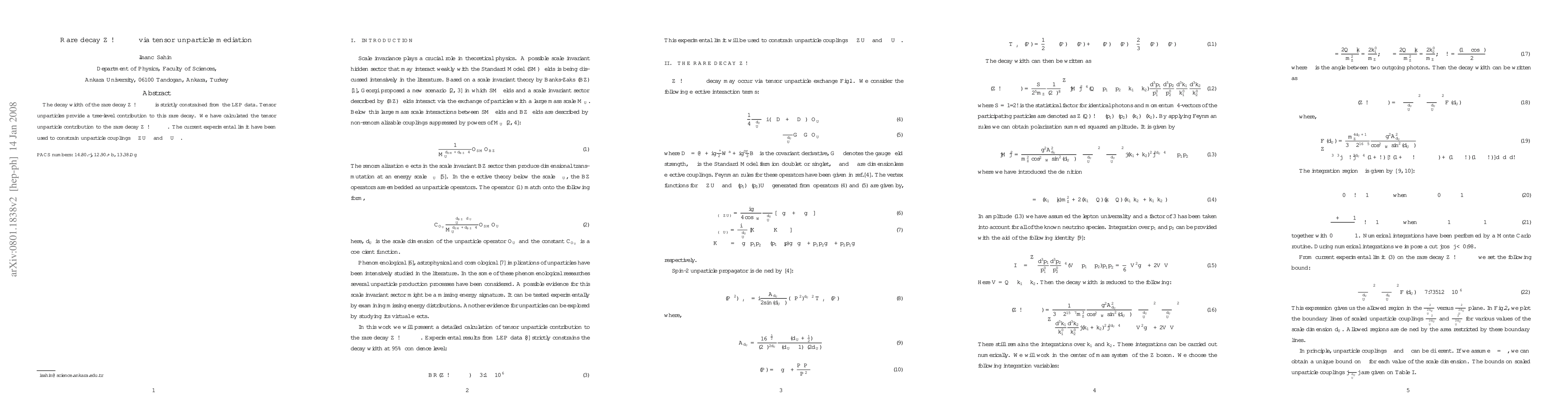 This paper investigates the rare decay Z → νν̄γγ mediated by tensor unparticles, calculating its contribution and using experimental limits to constrain the unparticle couplings νν̄Z Uμν and γγUμν. The study highlights the potential of tensor unparticles to influence this decay process.