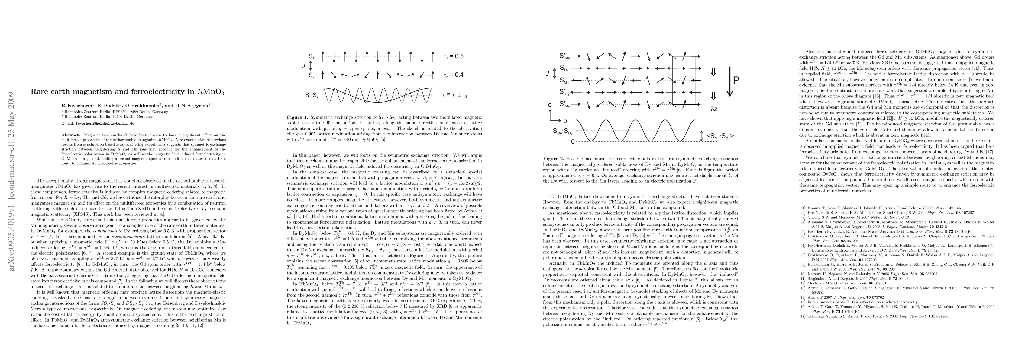 This paper investigates the impact of magnetic rare earth elements on the multiferroic properties of RMnO3, finding that symmetric exchange striction between rare earth and manganese ions enhances ferroelectric polarization in DyMnO3 and induces ferroelectricity in GdMnO3. The study suggests that incorporating a second magnetic species can boost the ferroelectric characteristics of multiferroic materials.