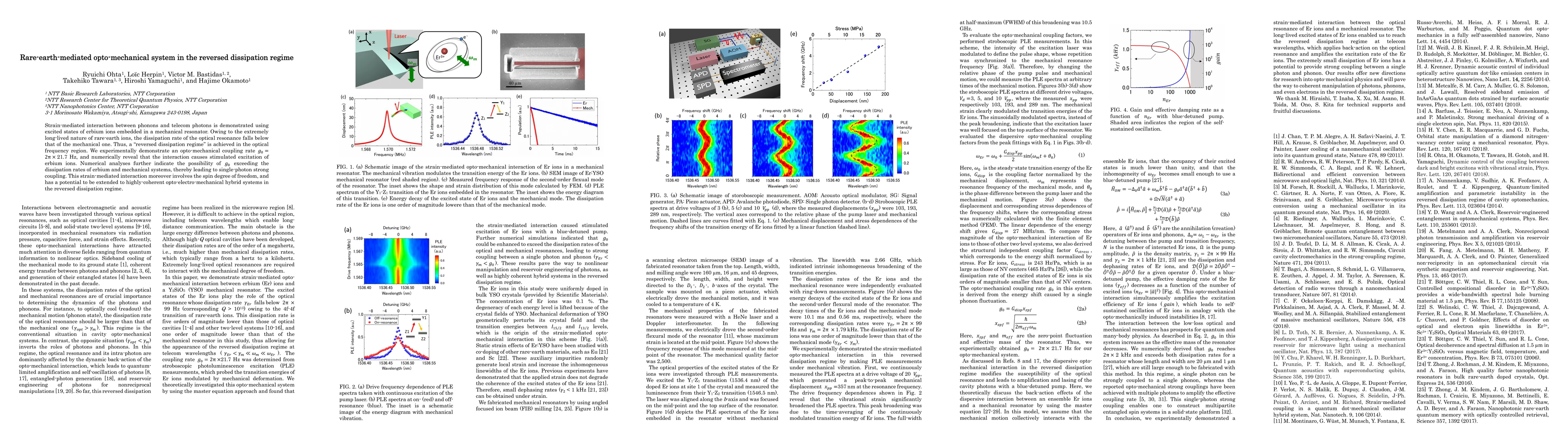 This paper demonstrates a rare-earth-mediated opto-mechanical system where erbium ions in a mechanical resonator enable strain-mediated phonon-photon interaction, achieving a reversed dissipation regime where optical dissipation is lower than mechanical dissipation. The study shows an opto-mechanical coupling rate of 21.7 Hz and suggests potential for single-photon strong coupling.
