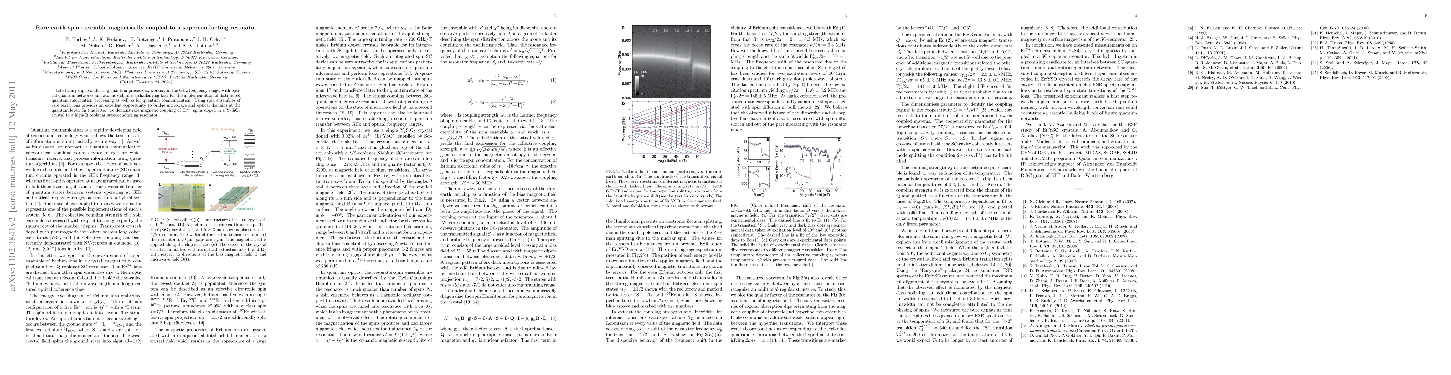 This paper demonstrates magnetic coupling between rare earth spin ensembles of Er$^{3+}$ ions in Y$_{2}$SiO$_{5}$ and a high-Q superconducting resonator, aiming to bridge microwave and optical quantum domains for quantum information processing and communication.