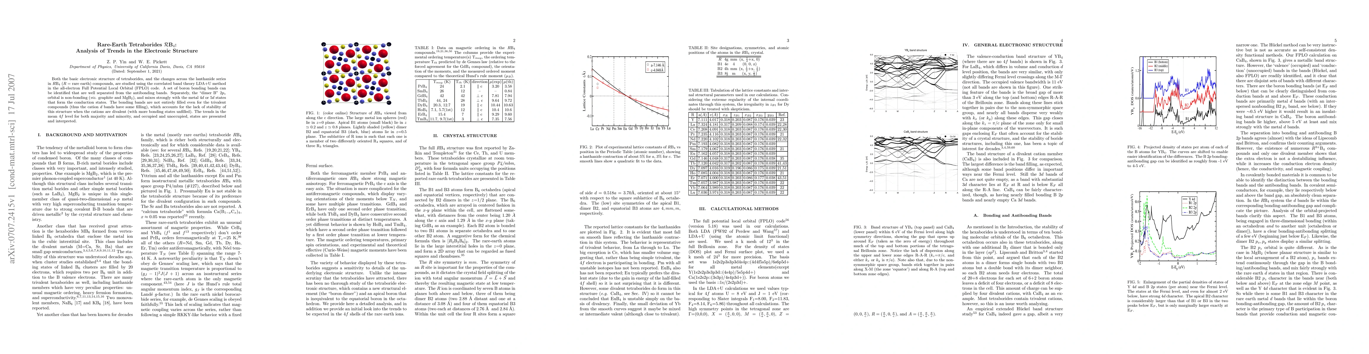 Researchers analyzed the electronic structure of rare-earth tetraborides using computational methods, finding that bonding bands in boron are partially filled, affecting stability, and identifying trends in 4f levels across the lanthanide series.