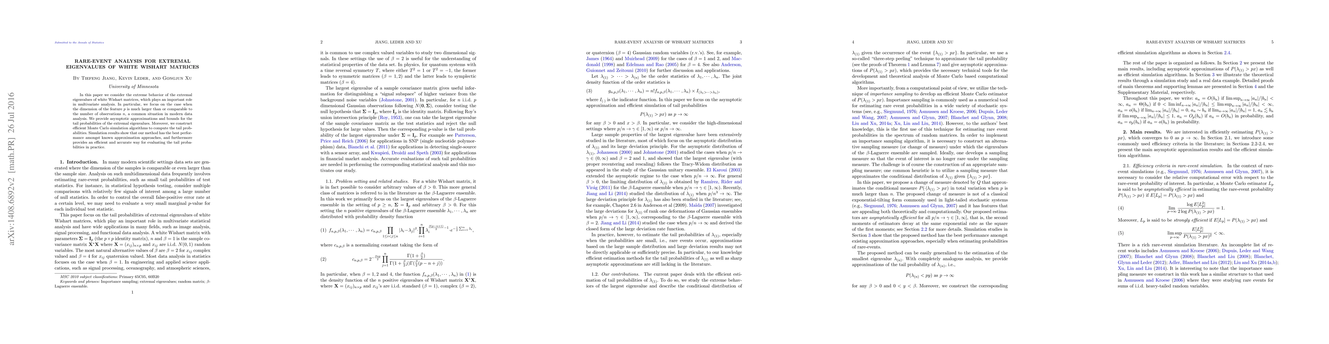 This paper investigates the extreme behavior of extremal eigenvalues in white Wishart matrices, especially when the feature dimension is large relative to observations. It provides asymptotic approximations and bounds for tail probabilities and constructs efficient Monte Carlo simulation algorithms, demonstrating superior performance and accuracy in practical evaluations.