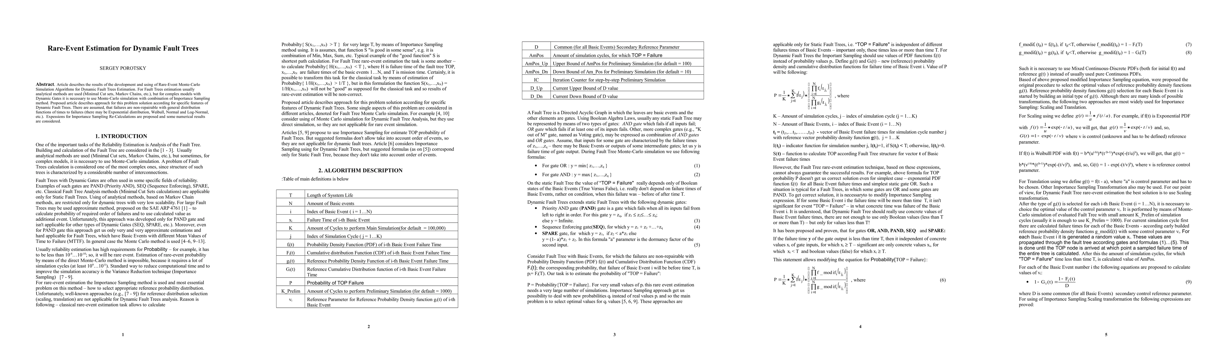 Article describes the results of the development and using of Rare-Event Monte-Carlo Simulation Algorithms for Dynamic Fault Trees Estimation. For Fault Trees estimation usually analytical methods are used (Minimal Cut sets, Markov Chains, etc.), but for complex models with Dynamic Gates it is necessary to use Monte-Carlo simulation with combination of Importance Sampling method. Proposed article describes approach for this problem solution according for specific features of Dynamic Fault Trees. There are assumed, that failures are non-repairable with general distribution functions of times to failures (there may be Exponential distribution, Weibull, Normal and Log-Normal, etc.). Expessions for Importance Sampling Re-Calculations are proposed and some numerical results are considered