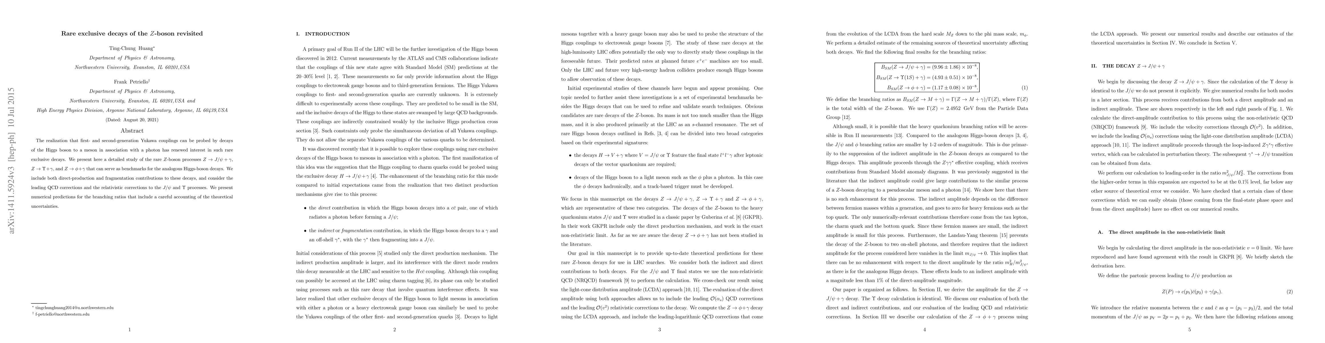 This paper revisits rare exclusive decays of the Z-boson, specifically $Z \to J/\psi+\gamma$, $Z \to \Upsilon+\gamma$, and $Z \to \phi+\gamma$, providing detailed numerical predictions for their branching ratios and considering both direct-production and fragmentation contributions, along with leading QCD and relativistic corrections.