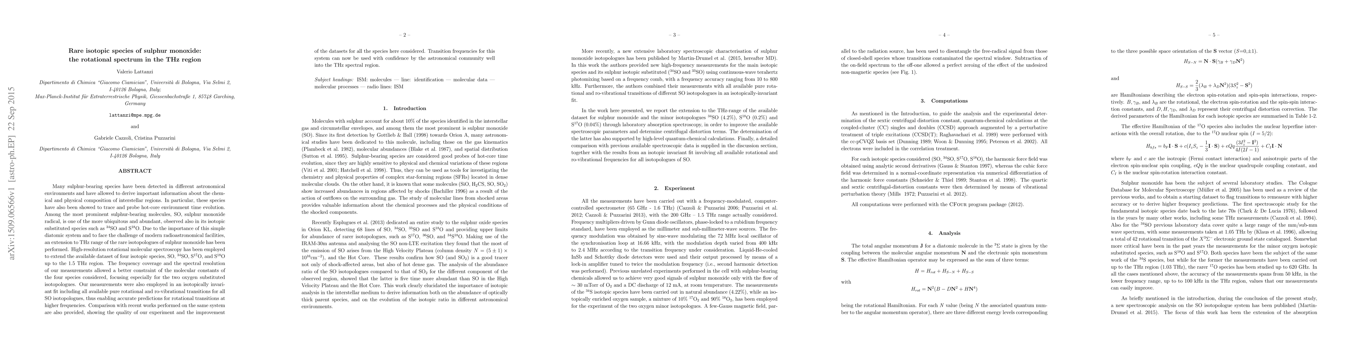 Researchers have measured the rotational spectrum of four isotopic species of sulphur monoxide, including $^{34}$SO and S$^{18}$O, in the THz region, providing a more complete dataset for astronomical studies.