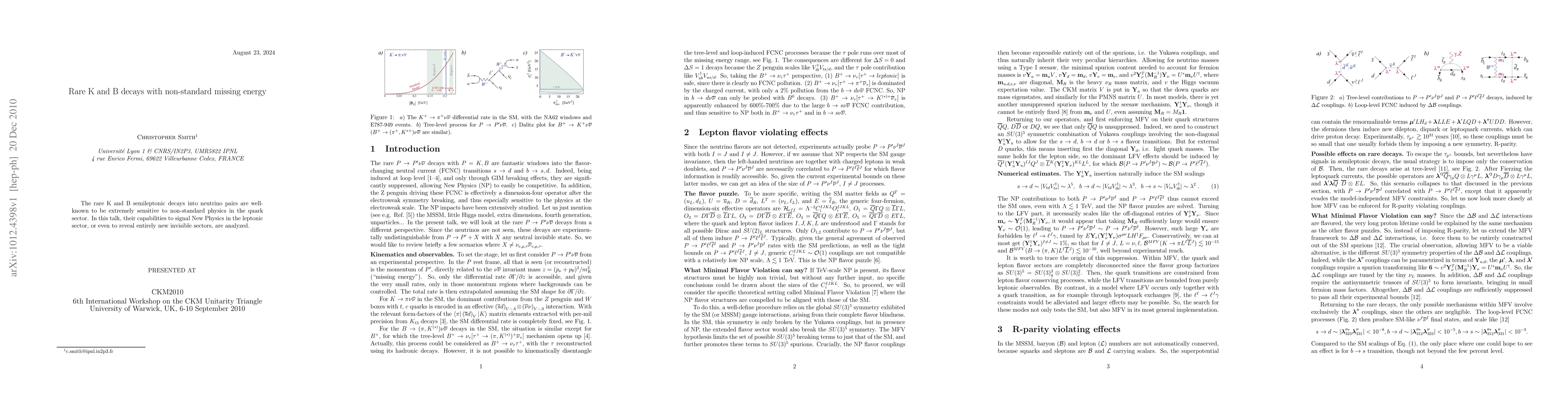 The rare K and B semileptonic decays into neutrino pairs are well-known to be extremely sensitive to non-standard physics in the quark sector. In this talk, their capabilities to signal New Physics in the leptonic sector, or even to reveal entirely new invisible sectors, are analyzed.