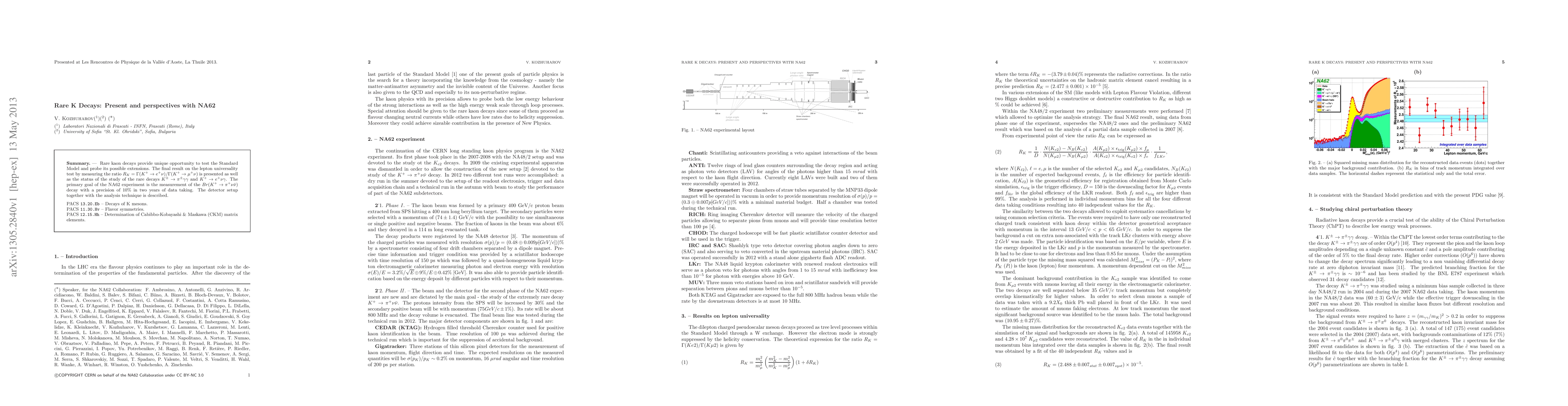This paper presents results from the NA62 experiment on rare kaon decays, including a lepton universality test and studies of specific rare decays. The NA62 aims to measure the Br(K+ to pi+ nu anti-nu) decay with 10% precision within two years, detailing its detector setup and analysis techniques.