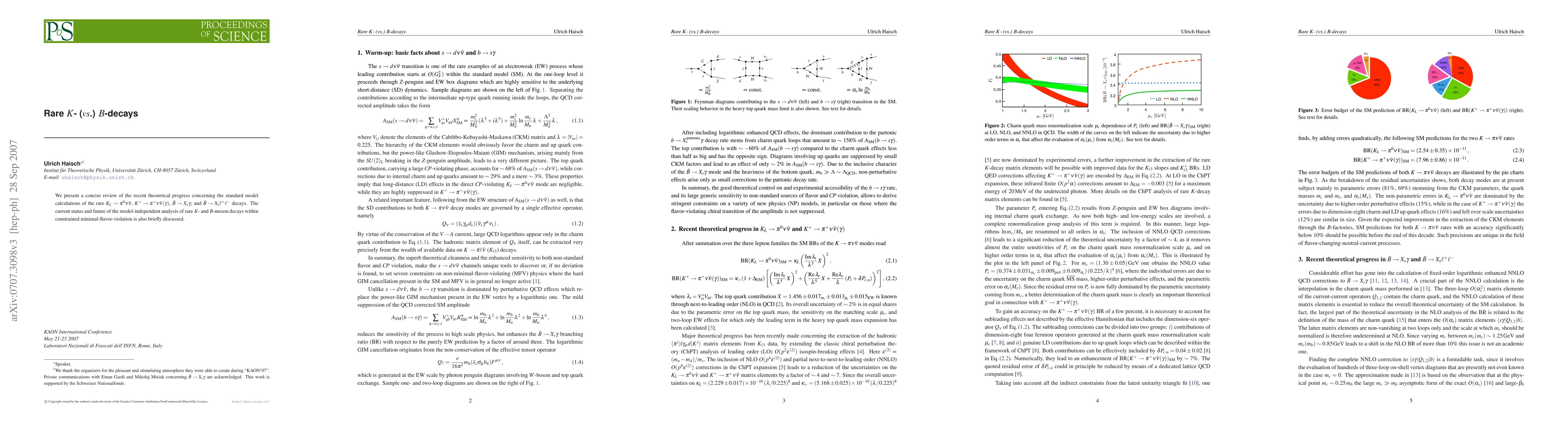 This paper reviews recent theoretical advancements in standard model calculations for rare K- and B-meson decays, including K_L -> pi^0 nu anti-nu, K^+ -> pi^+ nu anti-nu (gamma), anti-B -> X_s gamma, and anti-B -> X_s l^+ l^-. It also briefly discusses the current status and future of model-independent analyses within constrained minimal-flavor-violation.
