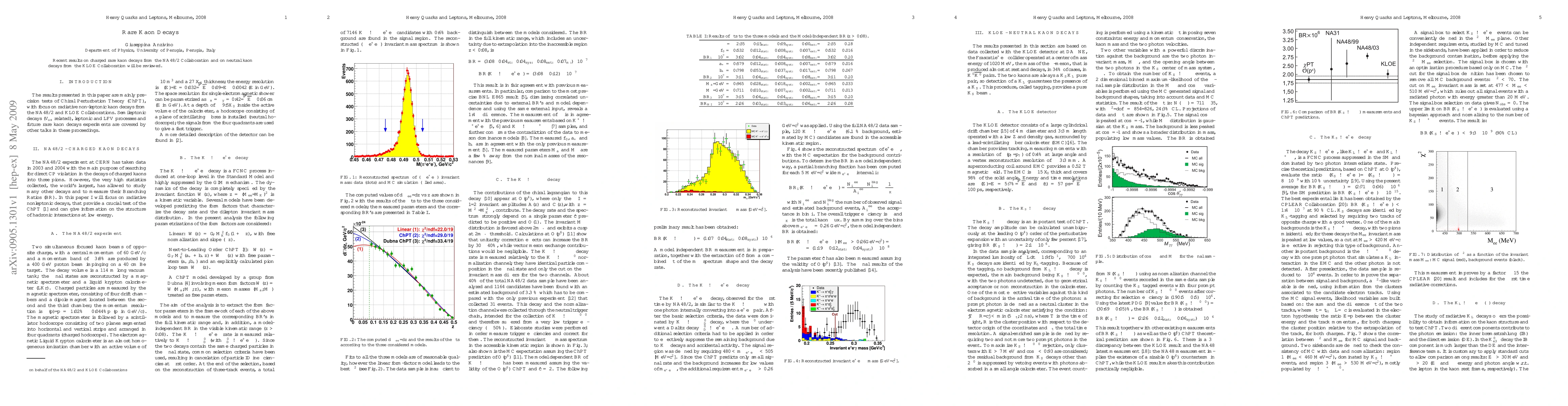 This paper reviews recent findings on rare charged kaon decays from the NA48/2 Collaboration and neutral kaon decays from the KLOE Collaboration, focusing on their implications for particle physics.