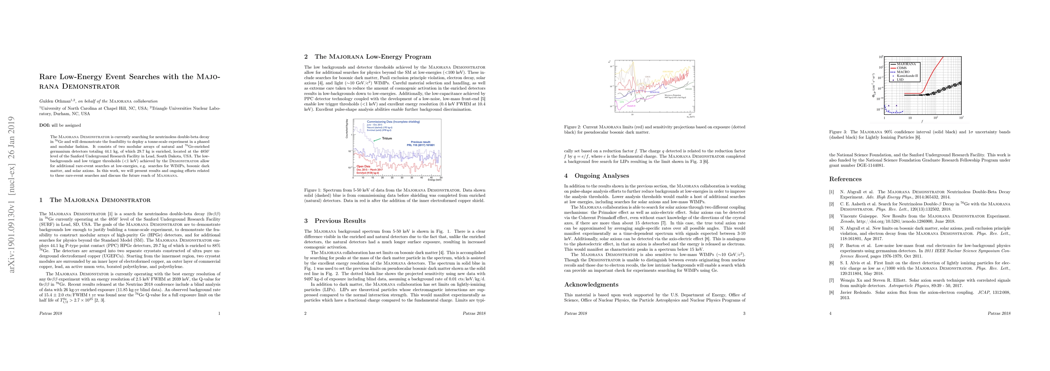 The Majorana Demonstrator enables rare-event searches at low energies, including WIMPs, bosonic dark matter, and solar axions.
