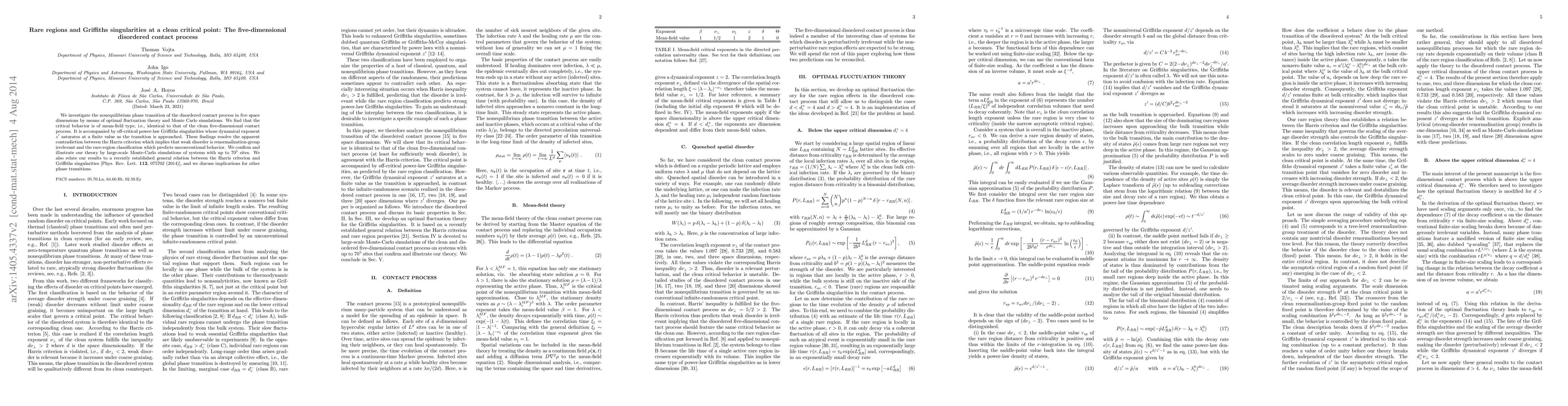 This paper investigates the critical behavior of the disordered contact process in five dimensions, finding mean-field type behavior and off-critical power-law Griffiths singularities. The study resolves the contradiction between the Harris criterion and rare-region classification using large-scale Monte Carlo simulations.