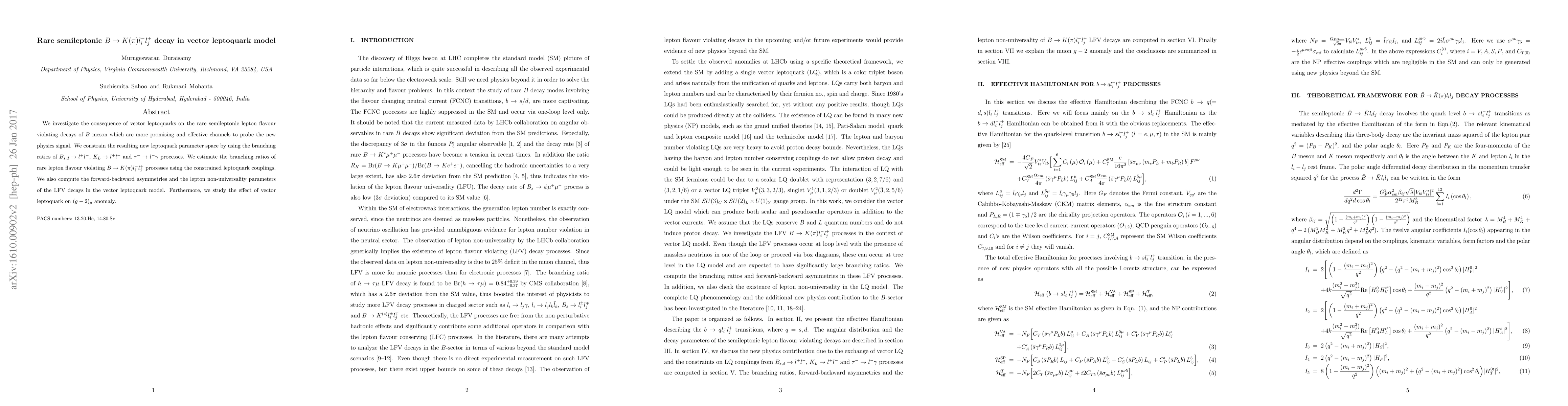 This paper explores the impact of vector leptoquarks on rare semileptonic $B \to K(\pi)l_i^- l_j^+$ decays, constraining the leptoquark parameter space using branching ratios of related processes. It estimates decay rates and computes asymmetries and non-universality parameters in the vector leptoquark model, also examining its effect on the muon $(g-2)$ anomaly.