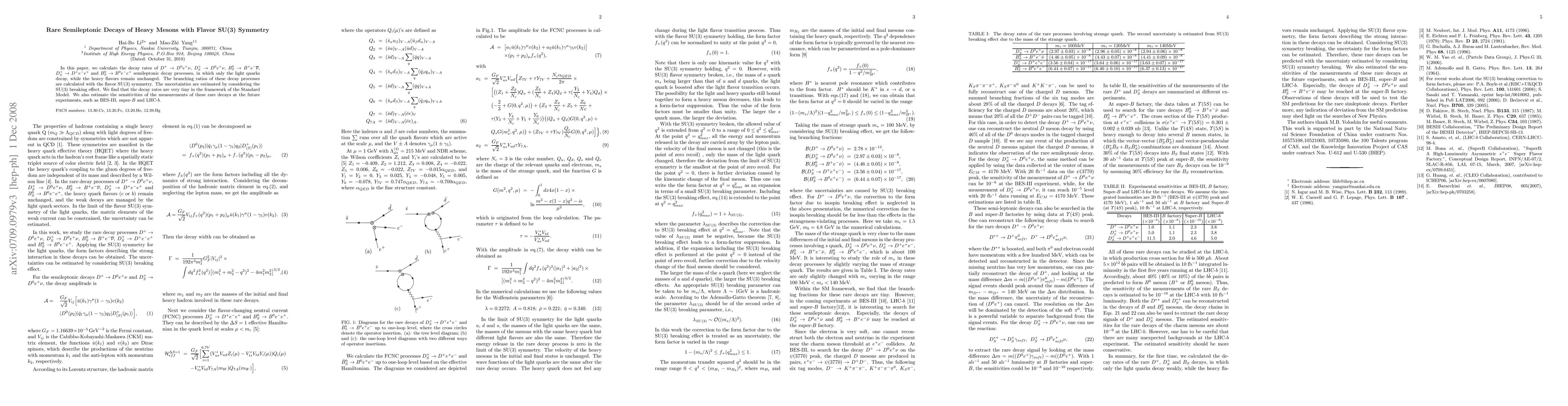 In this paper, we calculate the decay rates of $D^+ \to D^0 e^+ \nu$, $D^+_S \to D^0 e^+ \nu$, $B^0_S \to B^+ e^- \bar{\nu}$, $D^+_S \to D^+ e^- e^+$ and $B^0_S \to B^0 e^-e^+$ semileptonic decay processes, in which only the light quarks decay, while the heavy flavors remain unchanged. The branching ratios of these decay processes are calculated with the flavor SU(3) symmetry. The uncertainties are estimated by considering the SU(3) breaking effect. We find that the decay rates are very tiny in the framework of the Standard Model. We also estimate the sensitivities of the measurements of these rare decays at the future experiments, such as BES-III, super-$B$ and LHC-$b$.