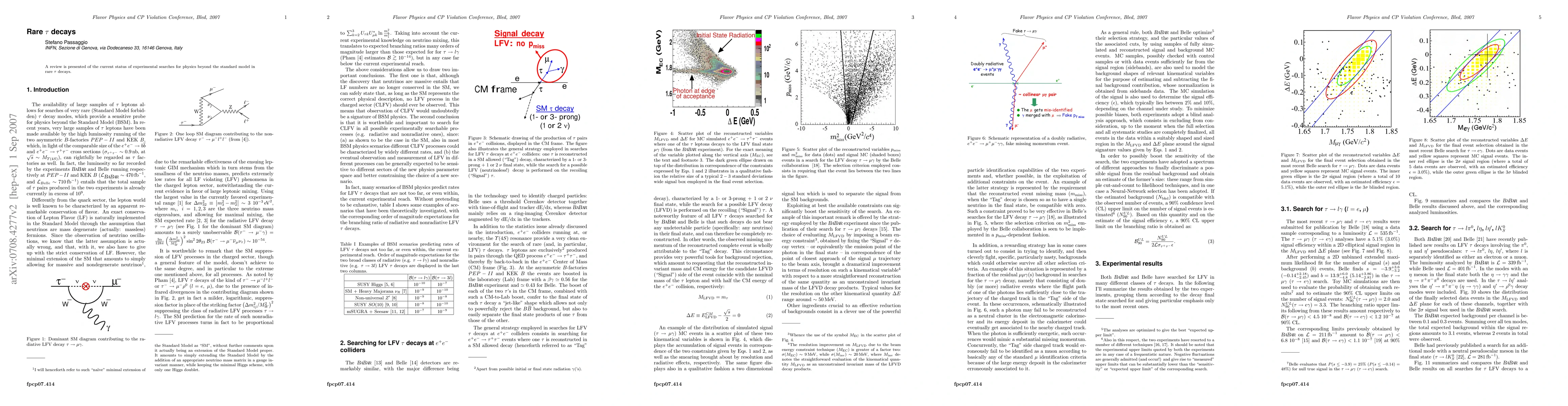 Summary: This paper reviews experimental efforts to detect physics beyond the Standard Model through rare tau decay processes, highlighting the latest findings and methodologies in this area of research.