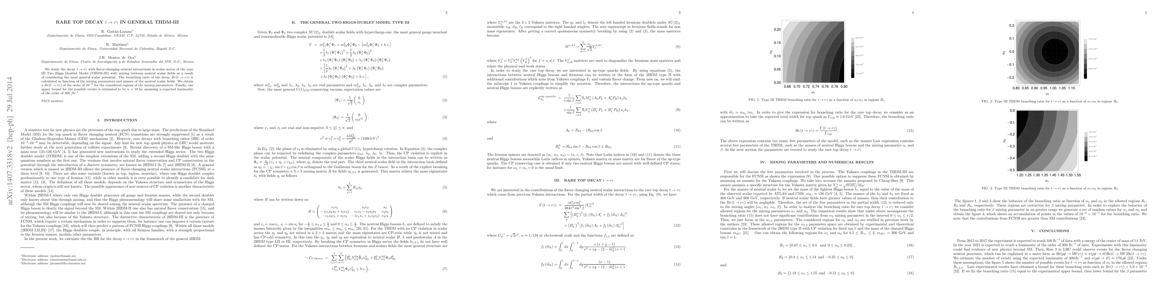 This paper investigates the rare top decay $t\rightarrow c\gamma$ within the general type III Two Higgs Doublet Model (THDM-III), focusing on flavor-changing neutral interactions. The branching ratio is calculated to be around $10^{-8}$, with an estimated upper bound of 18 events under an expected luminosity of 300 $fb^{-1}$.