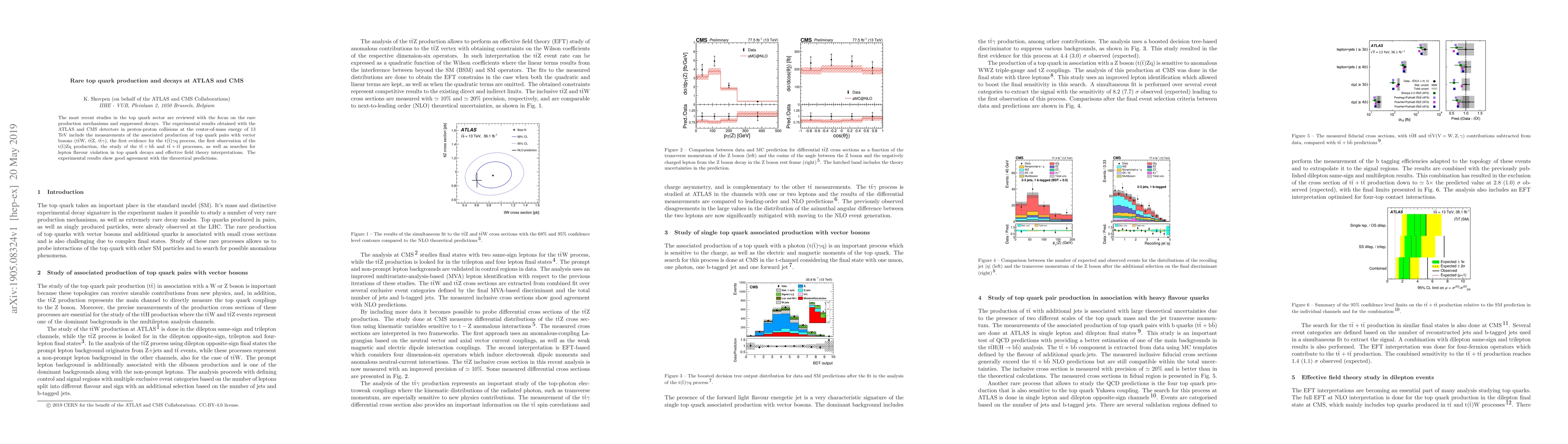The most recent studies in the top quark sector are reviewed with the focus on the rare production mechanisms and suppressed decays. The experimental results obtained with the ATLAS and CMS detectors in proton-proton collisions at the center-of-mass energy of 13 TeV include the measurements of the associated production of top quark pairs with vector bosons (${\rm t\bar{t}W}$, ${\rm t\bar{t}Z}$, ${\rm t\bar{t}\gamma}$), the first evidence for the ${\rm t(\bar{t})\gamma q}$ process, the first observation of the ${\rm t(\bar{t})Zq}$ production, the study of the ${\rm t\bar{t}+b\bar{b}}$ and ${\rm t\bar{t}+t\bar{t}}$ processes, as well as searches for lepton flavour violation in top quark decays and effective field theory interpretations. The experimental results show good agreement with the theoretical predictions.