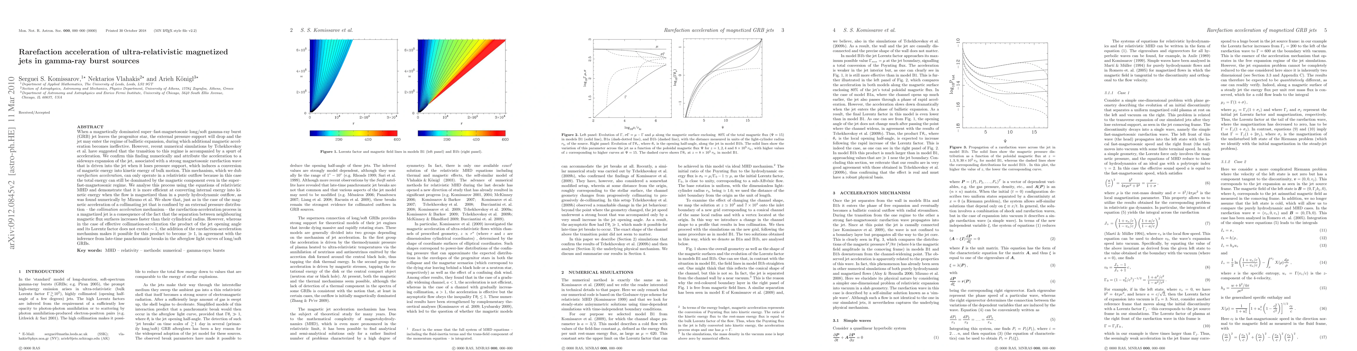 The paper confirms that ultrarelativistic magnetized jets in gamma-ray bursts undergo a sudden 'burst' of acceleration when losing external support, attributing this to a magnetic energy-to-kinetic energy conversion in a strong magnetosonic rarefaction wave. This 'rarefaction acceleration' is unique to relativistic jets and is linked to the geometry of magnetic flux surfaces, allowing for a larger product of jet opening angle and Lorentz factor, supporting the standard model of jet breaks in afterglow light curves.