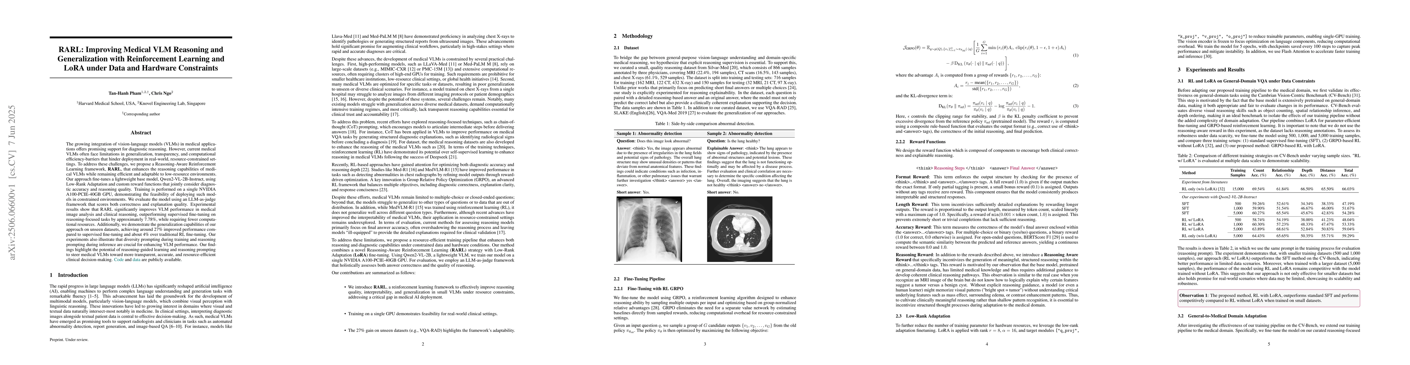 A new approach called RARL improves medical VLMs' performance in image analysis and clinical reasoning while being efficient and adaptable to low-resource environments.