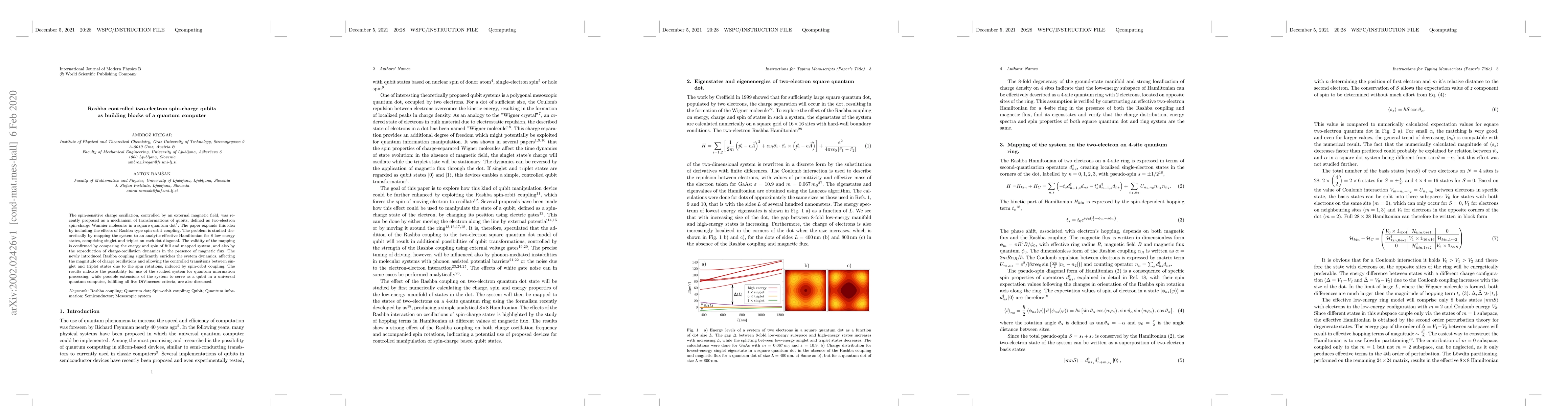 The spin-sensitive charge oscillation, controlled by an external magnetic field, was recently proposed as a mechanism of transformations of qubits, defined as two-electron spin-charge Wannier molecules in a square quantum dot. The paper expands this idea by including the effects of Rashba type spin-orbit coupling. The problem is studied theoretically by mapping the system to an analytic effective Hamiltonian for 8 low energy states, comprising singlet and triplet on each dot diagonal. The validity of the mapping is confirmed by comparing the energy and spin of full and mapped system, and also by the reproduction of charge-oscillation dynamics in the presence of magnetic flux. The newly introduced Rashba coupling significantly enriches the system dynamics, affecting the magnitude of charge oscillations and allowing the controlled transitions between singlet and triplet states due to the spin rotations, induced by spin-orbit coupling. The results indicate the possibility for use of the studied system for quantum information processing, while possible extensions of the system to serve as a qubit in a universal quantum computer, fulfilling all five DiVincenzo criteria, are also discussed.