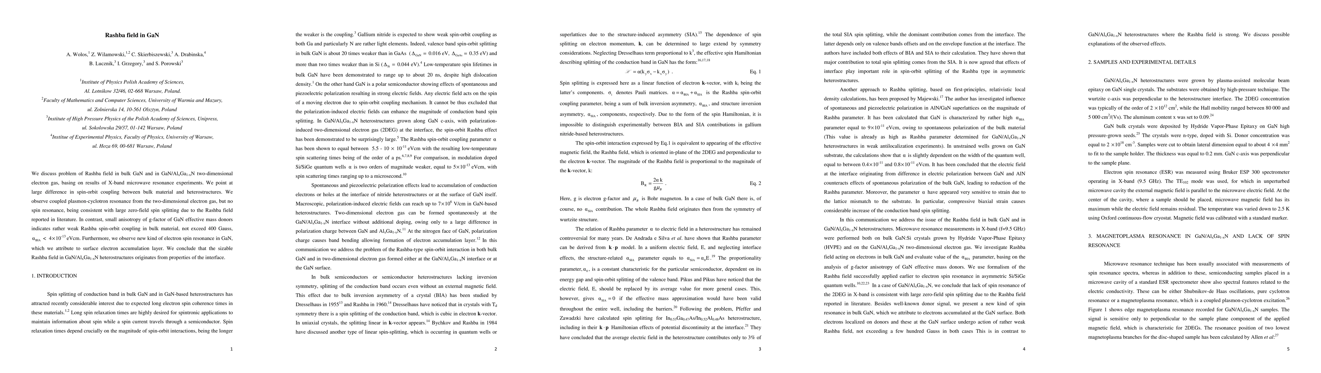 The study investigates the Rashba field in bulk GaN and GaN/AlGaN heterostructures, finding significant differences in spin-orbit coupling. The heterostructures show large spin splitting due to the Rashba field, while bulk GaN exhibits weak Rashba coupling and a new electron spin resonance attributed to surface electron accumulation.