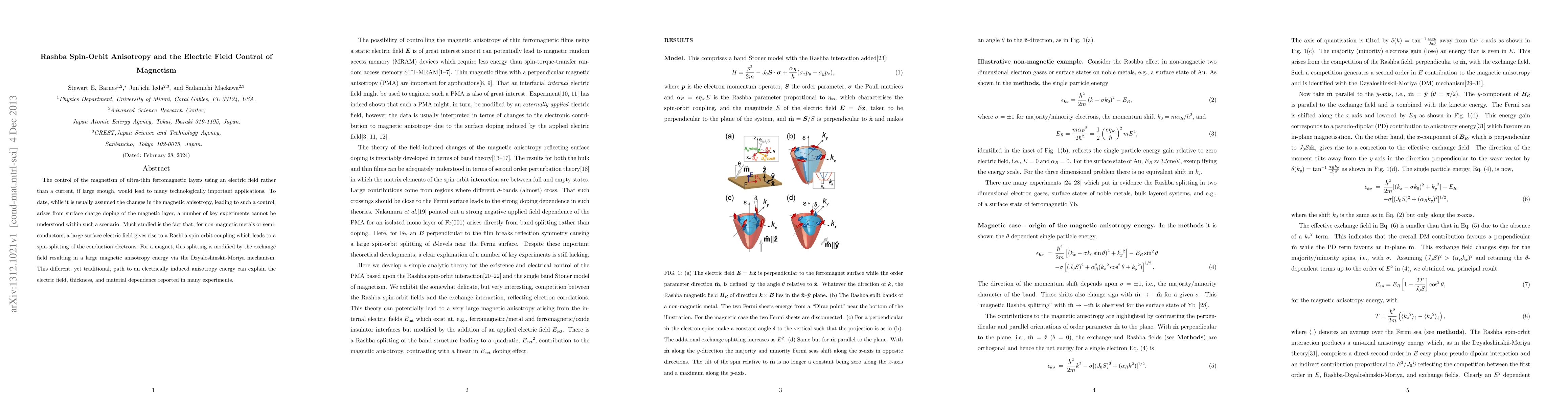 Researchers found that a large surface electric field can induce magnetism in ultra-thin ferromagnetic layers through Rashba spin-orbit anisotropy, offering a promising alternative to traditional current-controlled methods.