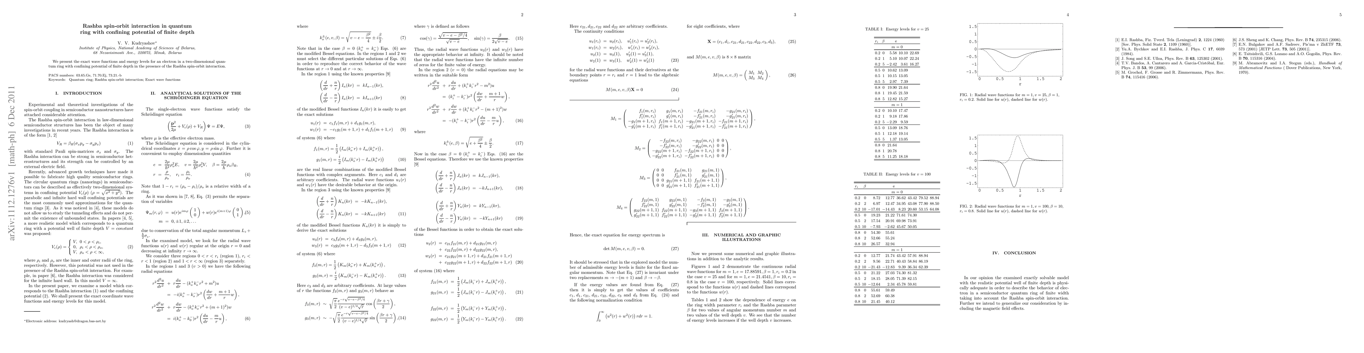 Summary: This paper provides exact solutions for the wave functions and energy levels of an electron in a two-dimensional quantum ring with a confining potential of finite depth, considering the influence of the Rashba spin-orbit interaction. The study elucidates the interplay between spin-orbit coupling and the quantum confinement effects.