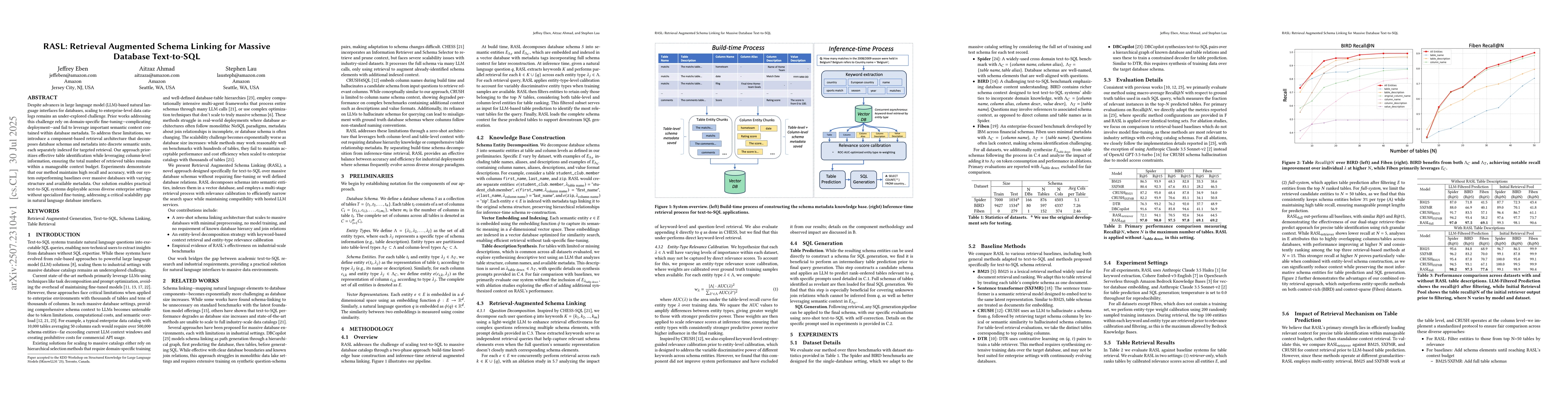 Despite advances in large language model (LLM)-based natural language interfaces for databases, scaling to enterprise-level data catalogs remains an under-explored challenge. Prior works addressing this challenge rely on domain-specific fine-tuning - complicating deployment - and fail to leverage important semantic context contained within database metadata. To address these limitations, we introduce a component-based retrieval architecture that decomposes database schemas and metadata into discrete semantic units, each separately indexed for targeted retrieval. Our approach prioritizes effective table identification while leveraging column-level information, ensuring the total number of retrieved tables remains within a manageable context budget. Experiments demonstrate that our method maintains high recall and accuracy, with our system outperforming baselines over massive databases with varying structure and available metadata. Our solution enables practical text-to-SQL systems deployable across diverse enterprise settings without specialized fine-tuning, addressing a critical scalability gap in natural language database interfaces.