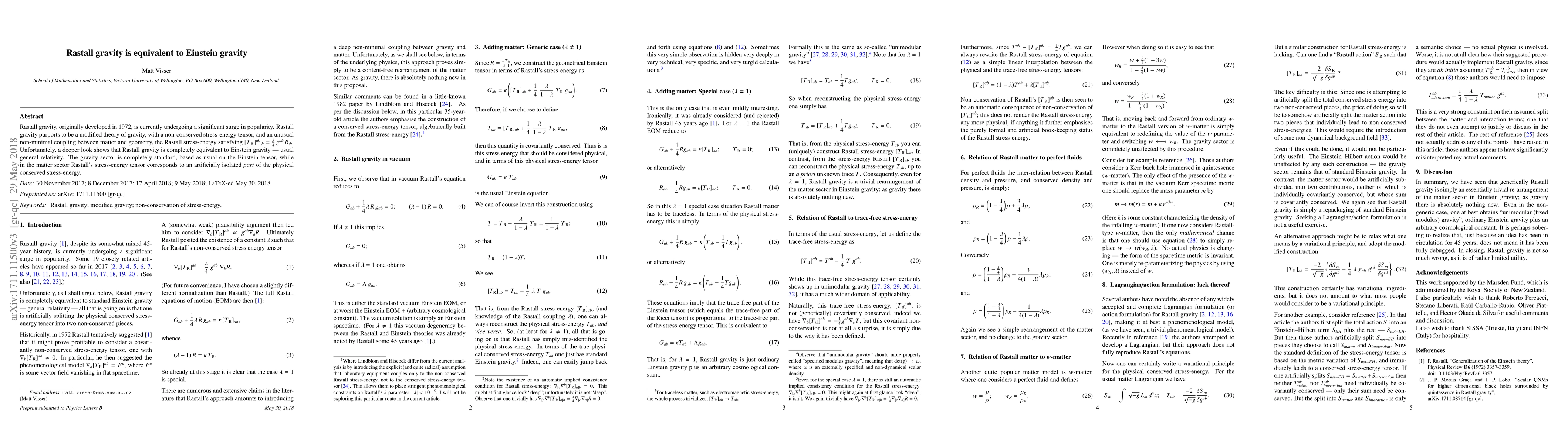 The paper demonstrates that Rastall gravity, despite its unique formulation involving a non-conserved stress-energy tensor, is fully equivalent to Einstein's general relativity. The apparent modifications in the theory do not alter the fundamental gravitational dynamics.