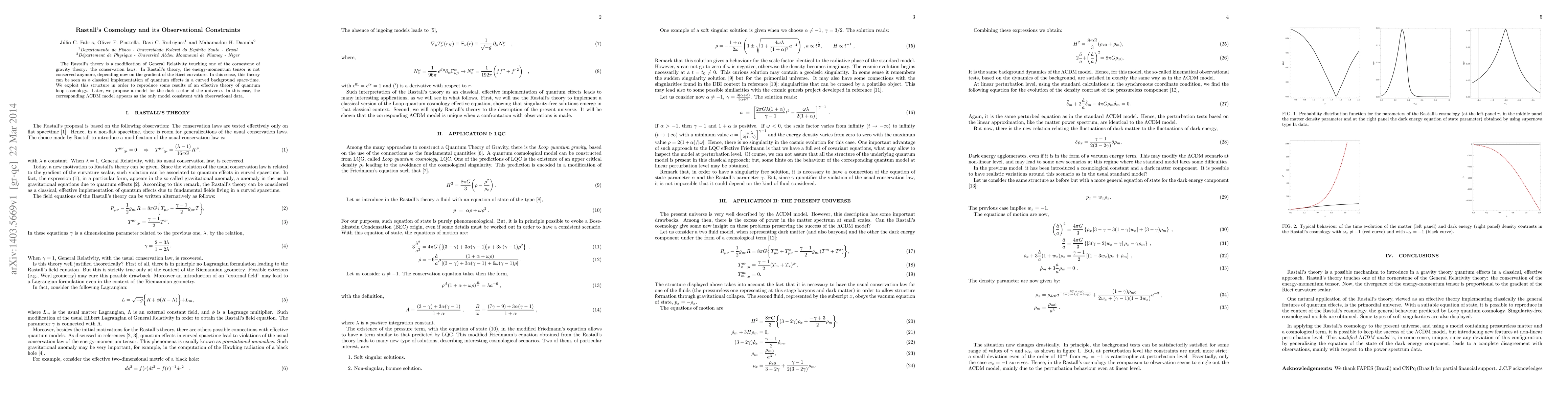 The Rastall's theory is a modification of General Relativity touching one of the cornestone of gravity theory: the conservation laws. In Rastall's theory, the energy-momentum tensor is not conserved anymore, depending now on the gradient of the Ricci curvature. In this sense, this theory can be seen as a classical implementation of quantum effects in a curved background space-time. We exploit this structure in order to reproduce some results of an effective theory of quantum loop cosmology. Later, we propose a model for the dark sector of the universe. In this case, the corresponding $\Lambda$CDM model appears as the only model consistent with observational data.