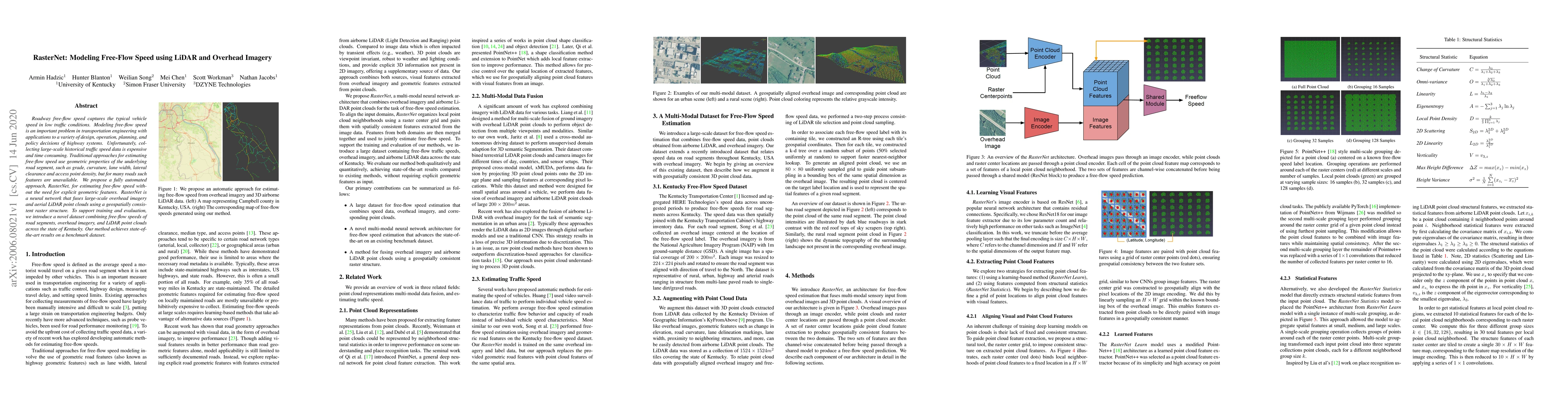 Researchers developed RasterNet, a neural network that estimates free-flow speed using LiDAR and overhead imagery without needing explicit road features. Their approach achieves state-of-the-art results on a benchmark dataset.