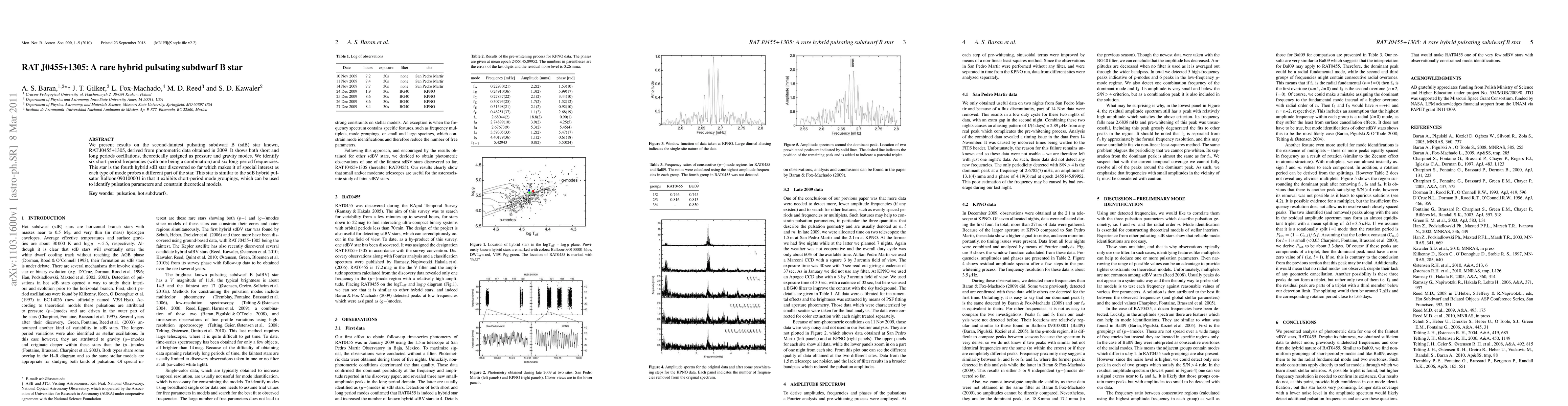 RAT J0455+1305 is a rare hybrid pulsating subdwarf B star exhibiting both short and long-period oscillations, identified as pressure and gravity modes. This star is the fourth known hybrid sdB star, providing valuable data to constrain theoretical models of stellar pulsation.