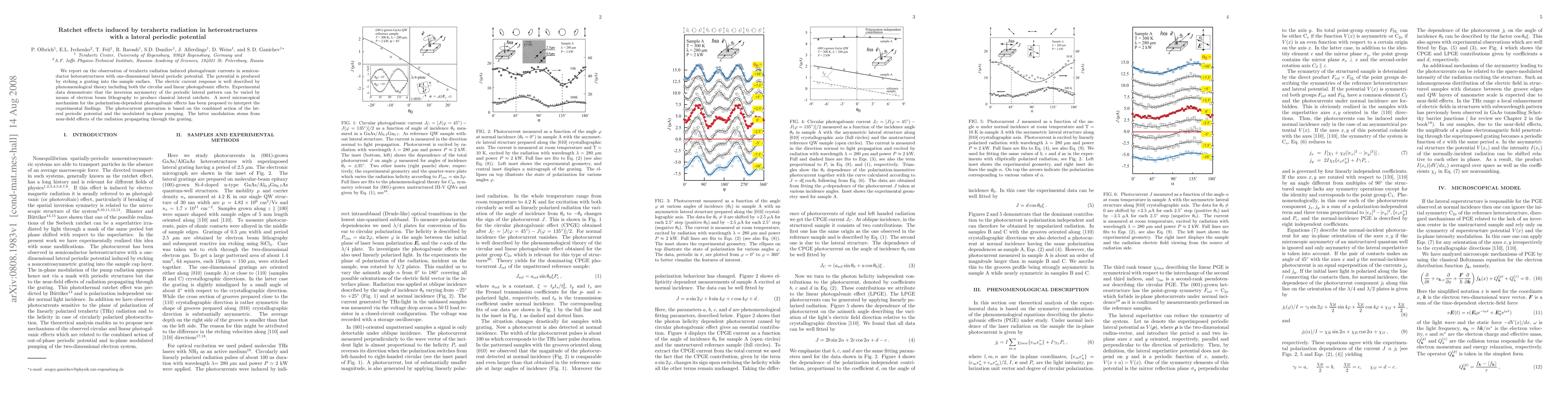 This paper reports on terahertz radiation-induced photogalvanic currents in semiconductor heterostructures with a lateral periodic potential, demonstrating the generation of classical lateral ratchets and proposing a microscopic mechanism for the polarization-dependent photogalvanic effects based on the combined action of the periodic potential and modulated in-plane pumping.