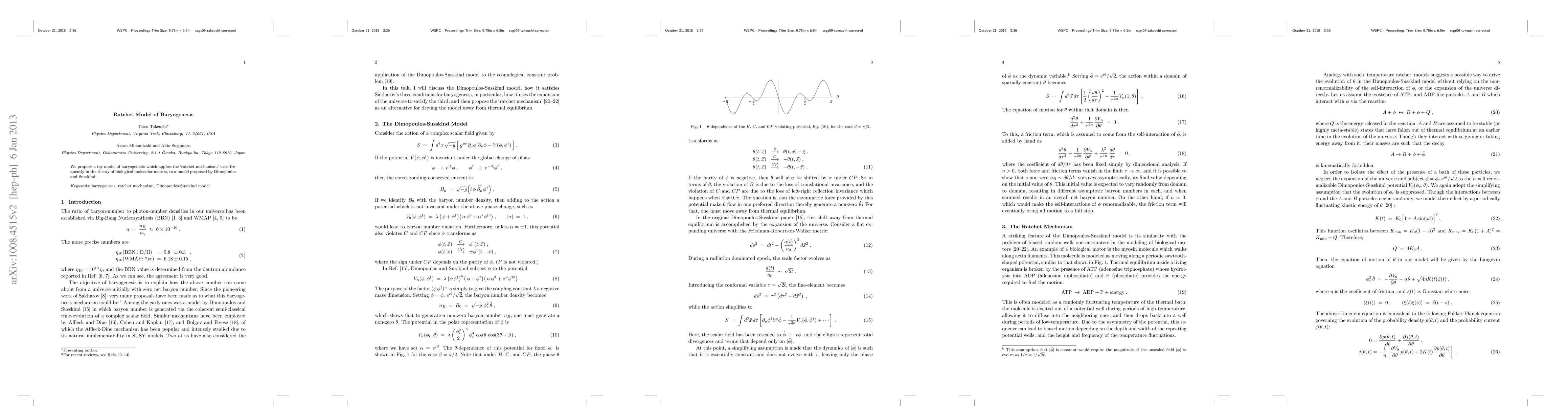 Summary: This paper introduces a simplified model of baryogenesis utilizing the ratchet mechanism from biological molecular motors to enhance a model by Dimopoulos and Susskind, aiming to explain the observed matter-antimatter asymmetry in the universe.