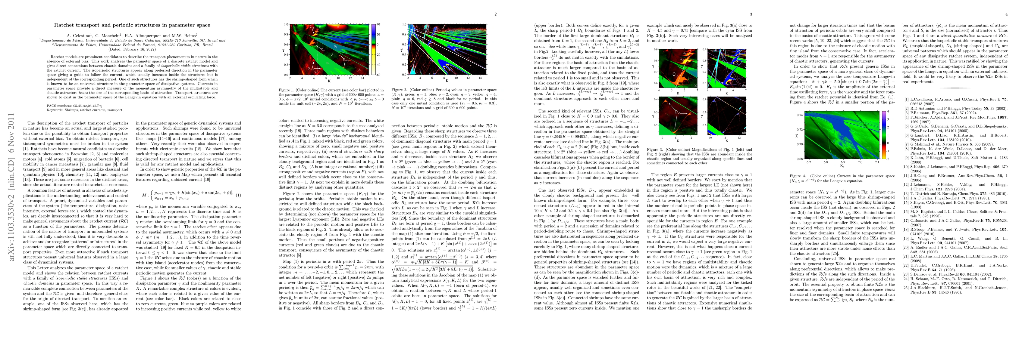 This paper explores the parameter space of a discrete ratchet model, revealing connections between chaotic domains and isoperiodic stable structures that guide the ratchet current. These structures, including a universal shrimp-shaped form, indicate momentum asymmetry in multistable and chaotic attractors, and transport structures are also found in the parameter space of the Langevin equation with an external oscillating force.