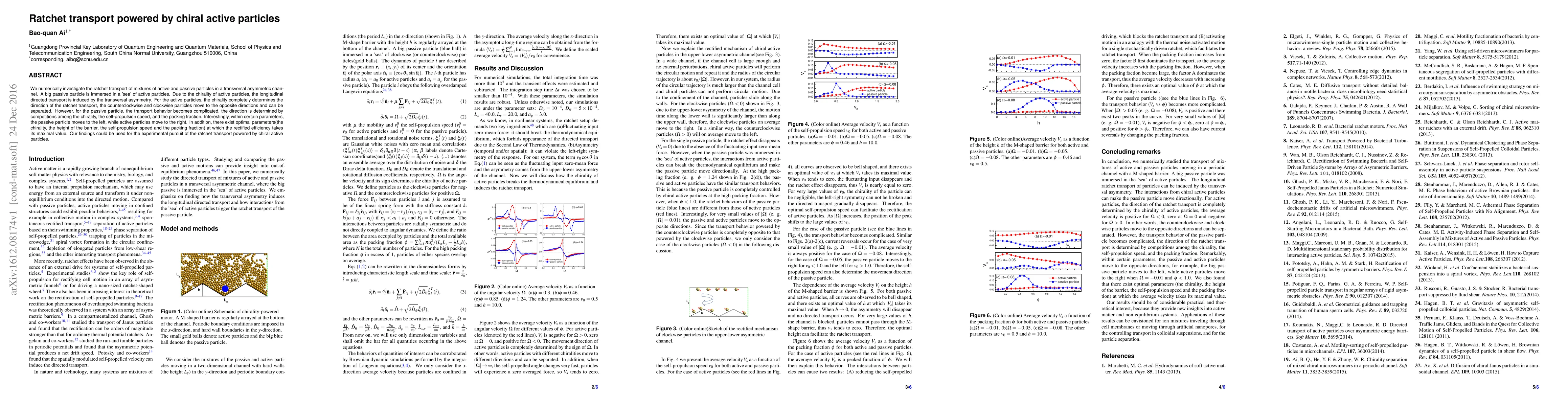 This paper numerically explores the ratchet transport of active and passive particles in an asymmetric channel, revealing that chiral active particles induce directional transport. Active particles move in opposite directions based on their chirality, while passive particles' transport direction is influenced by multiple factors, including chirality and packing fraction, leading to complex behaviors and optimal conditions for maximal transport efficiency.